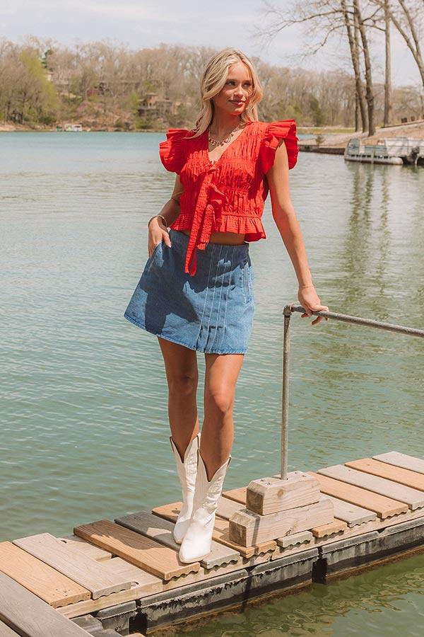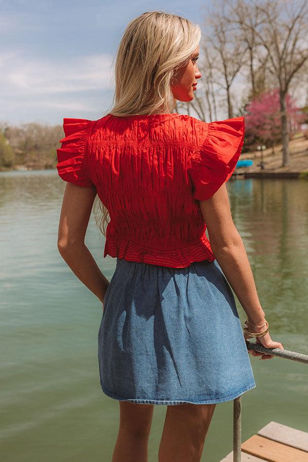 - This smocked top is all about charming, post-worthy moments! Its adorable bows and flutter sleeves give it the sweetest vibe. - Unlined material - White accent stitching - A v-cut neckline - Short flutter sleeves - A smocked design - A zippered front with three tie features - A flattering silhouette that ends in a peplum hemline Measurements S : Bust 28", Hip 30", Length 16.5", Sleeve Length 3", Waist 28". M : Bust 30", Hip 32", Length 16.5", Sleeve Length 3", Waist 30". L : Bust 32", Hip 34", Length 17", Sleeve Length 3", Waist 32".