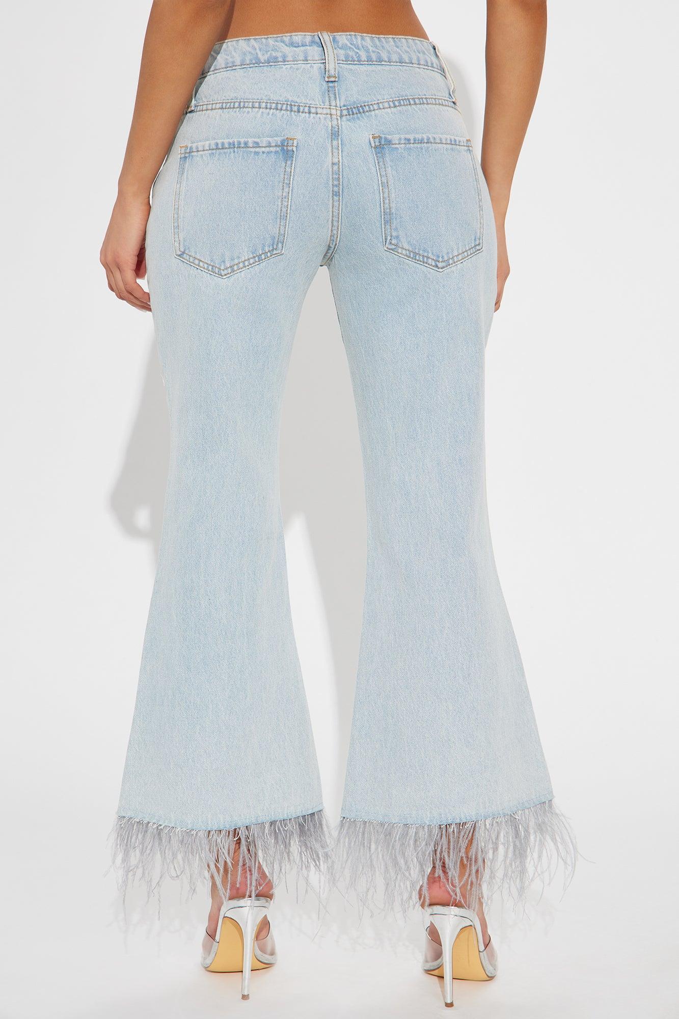 Available In Light Wash. Pair With Light As A Feather Trim Denim Trucker Jacket Straight Leg Jean Cropped Feather Trim 10.5" High Rise 24" Inseam 100% Cotton Non Stretch Imported