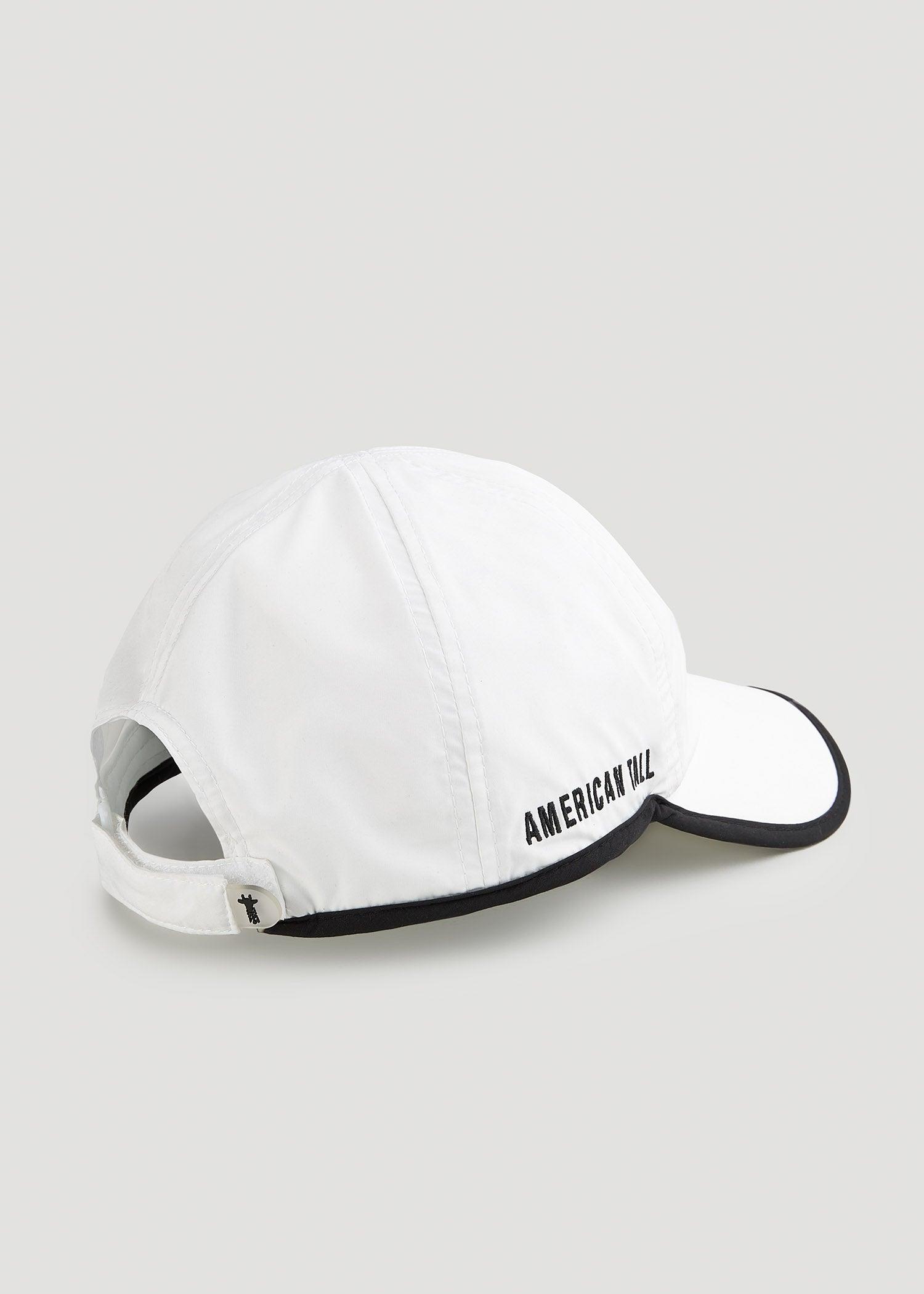 American Tall Lightweight Performance Hat in Bright White. 100% moisture wicking, quick drying Polyester. Super lightweight and comfortable. Embroidered American Tall logo on the front and side. Velcro back closure. For hygienic reasons, hats are FINAL SALE.