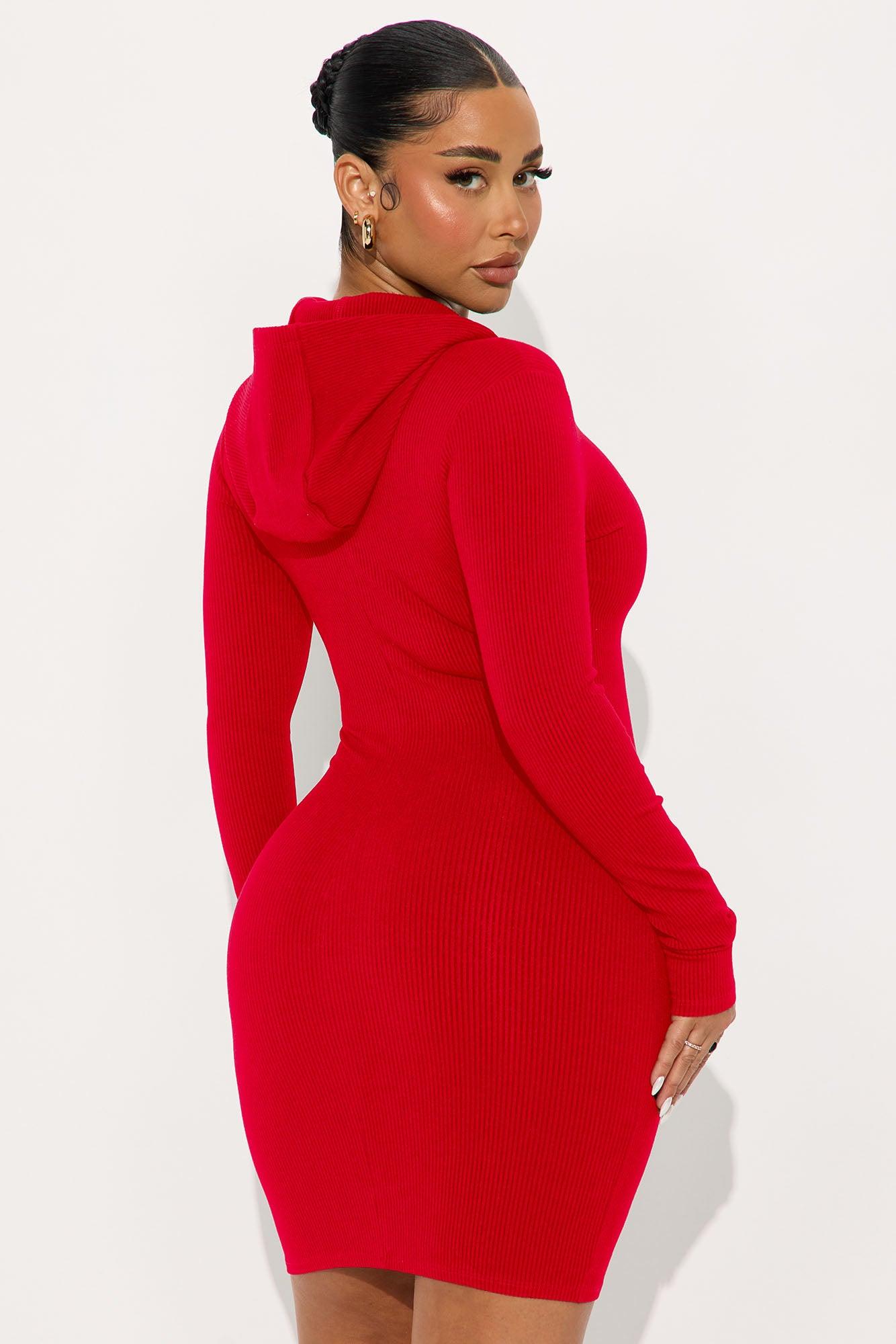 Lila Hooded Snatched Mini Dress - Red Female
