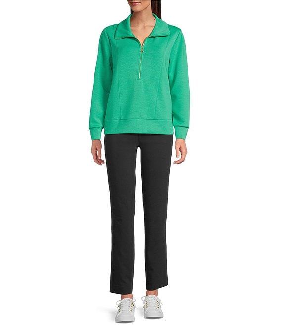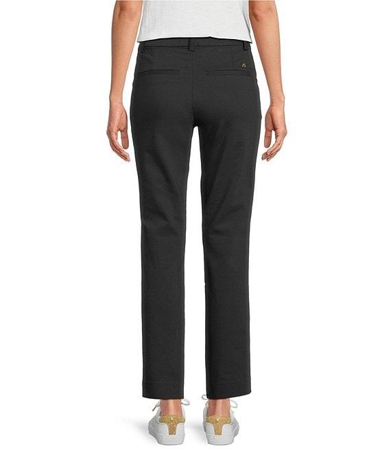 From Lily Pulitzer, these pants feature: Stretch double cloth fabrication High-rise Straight leg Flat front styling 2 side seam zip pockets Back pockets Front button/zip closure Approx. 29" length Cotton/polyester/spandex Machine wash Imported.