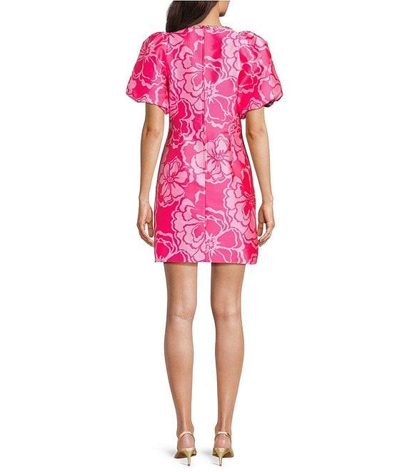 Lilly Pulitzer Britnee Floral Jacquard Beaded Crew Neck Short Puff Sleeve Shift Dress