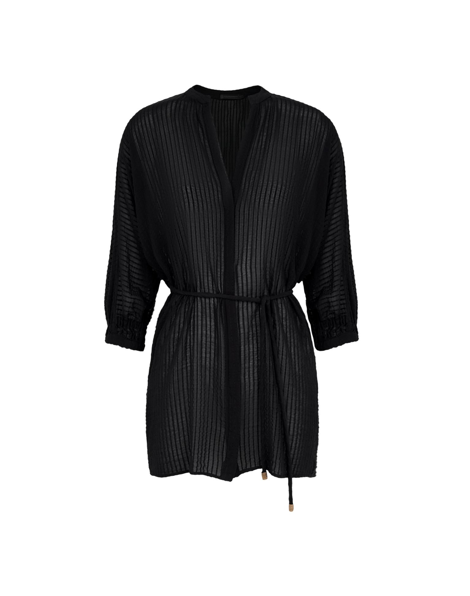 The ViX Lilou Short Cover Up is made from our textured striped cotton fabric and features a round neckline with a subtle front dip, ¾ sleeves, and front closures. It’s finished with custom drawstring ties at the waist for a personalized fit. Style the Lilou Short Cover Up with a matching bikini or one piece and ViX acc