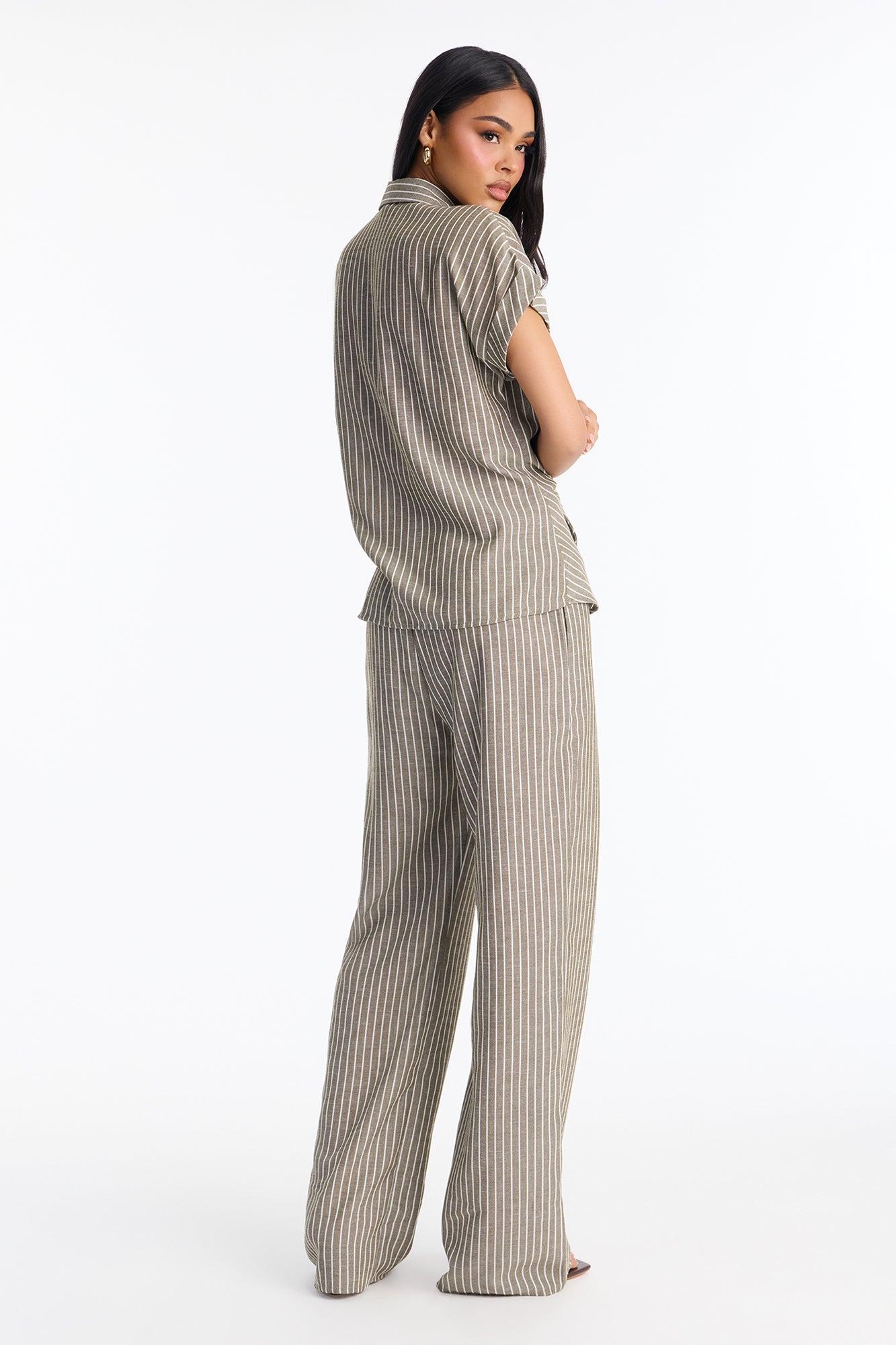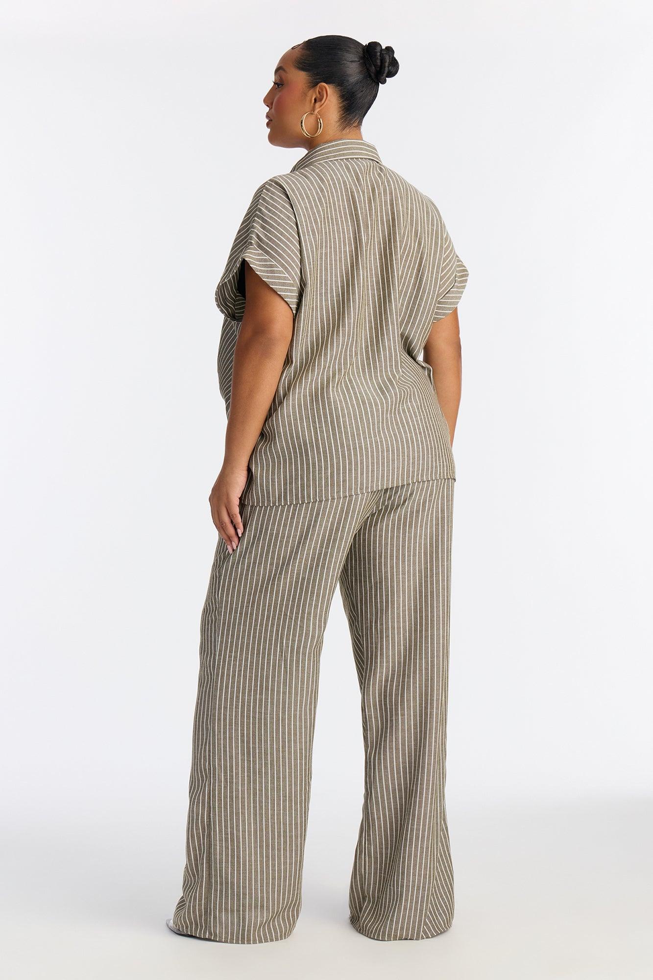 Available In Olive. 2 Piece Ensemble Tie Front Top And Wide Leg Bottom Non-stretch 31.5" Inseam Elastic Waistband Pockets Self : 100% Polyester Imported California Proposition 65WARNING: Cancer and Reproductive Harm - www.P65Warnings.ca.gov.