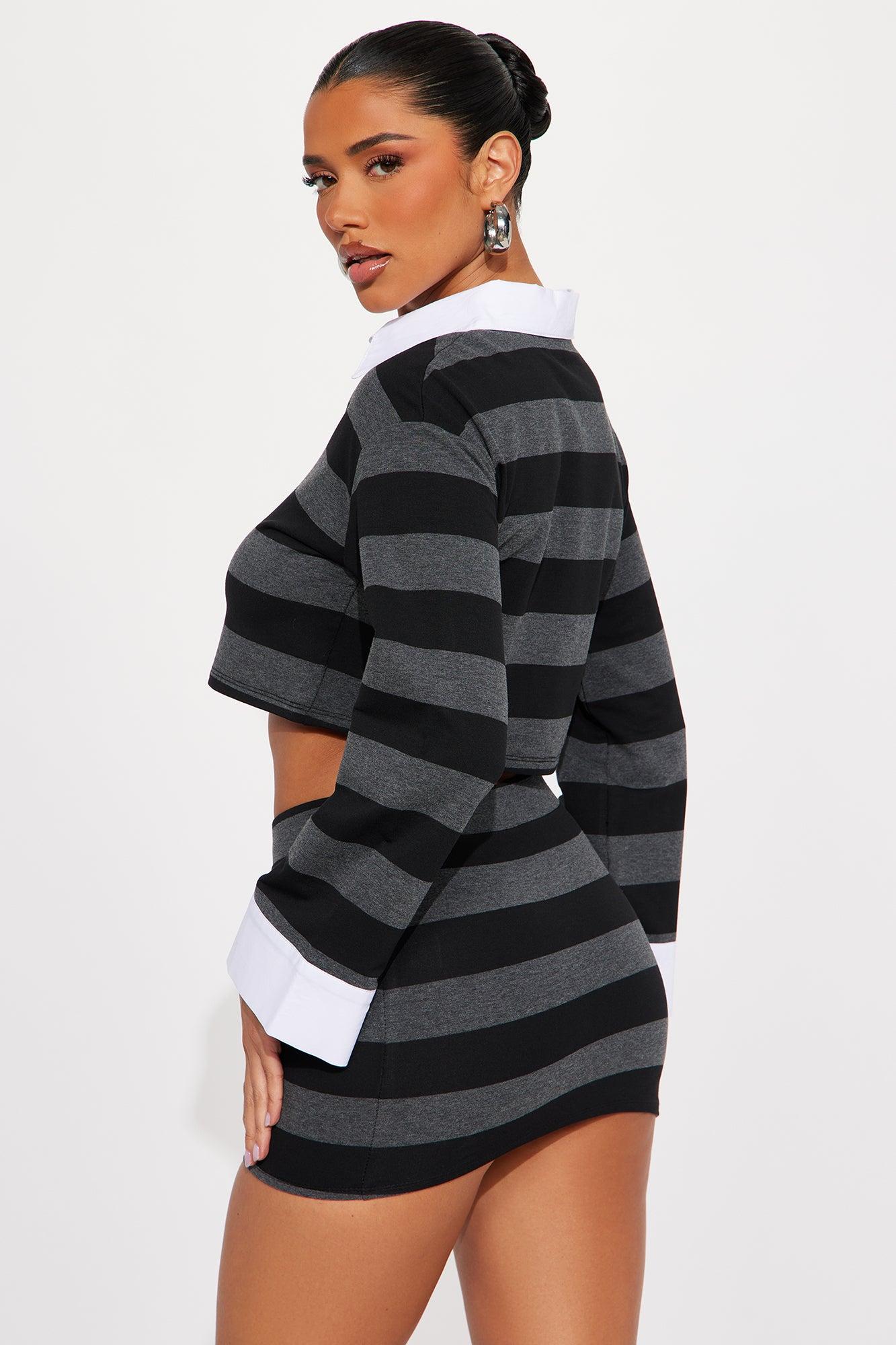 Lindsay Striped Polo Long Sleeve Skirt Set - Black
