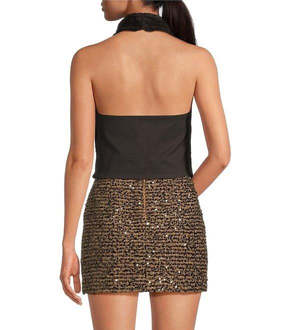From Line and Dot, this top features: Faux fur fabrication Halter neckline Sleeveless Hidden side zipper closure Open back detail Approx. 19.5" length Faux fur self: polyester Lining: polyester Dry clean only Imported.
