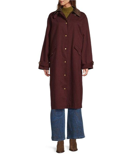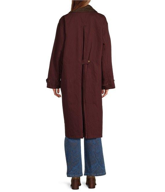 From Line and Dot, this jacket features: Knit fabrication Collared neckline Long sleeves with buttoned tabs Button front closure Trench coat silhouette Front flap pockets Back dart detail with tab Fully lined Self and Lining: Cotton Lining: Polyester Dry Clean Imported.