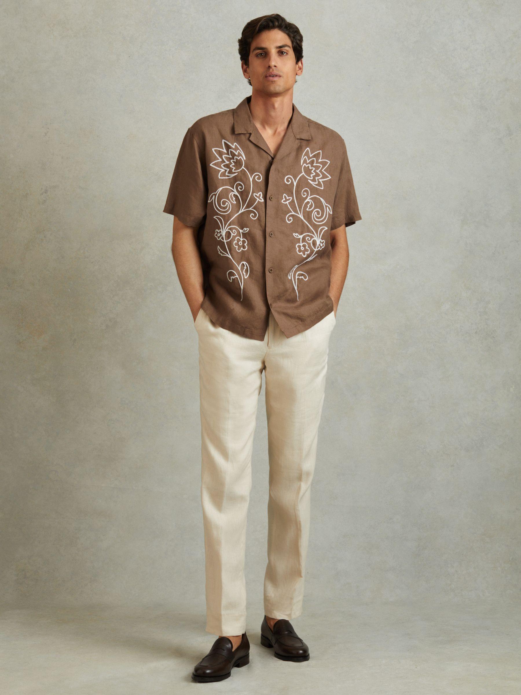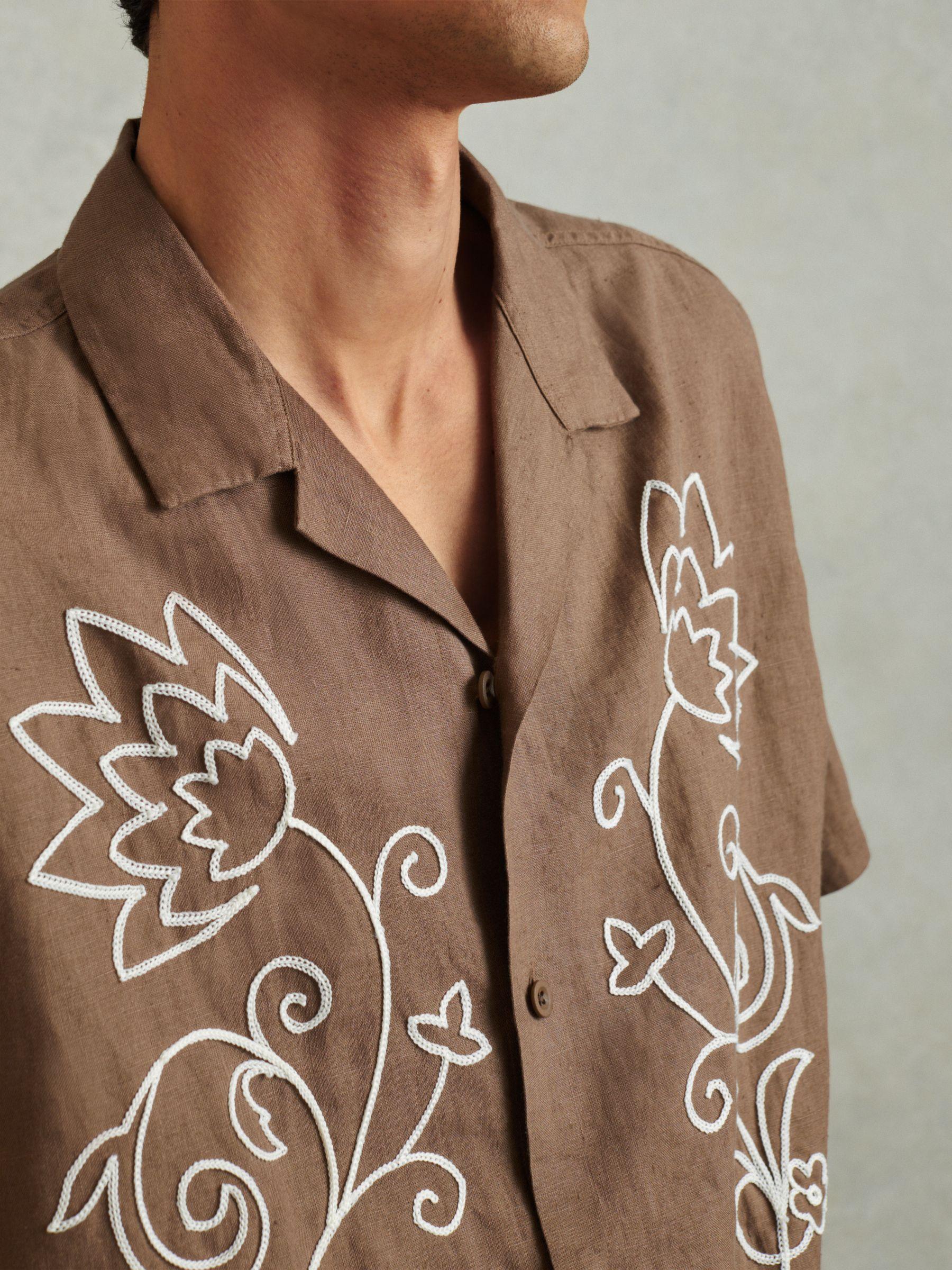 The black/white Sonny shirt is a classic Cuban-collar shape made from 100% linen for a lightweight and natural texture. Contrast embroidery features to the front. 100% linen. Embroidered detailing. Cuban collar. Button-front closure. The model is wearing a size M. Measurements of model: Height 6ft 2.5'' / 189cm.