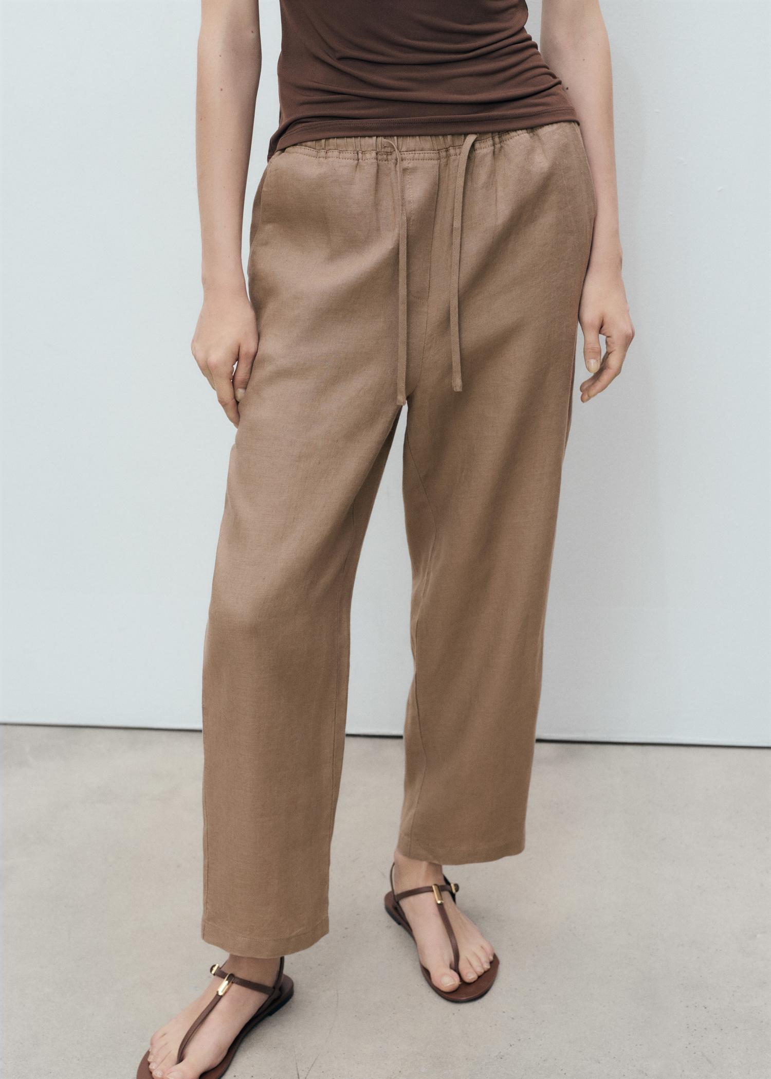Linen pants with drawstring - Women | MANGO USA