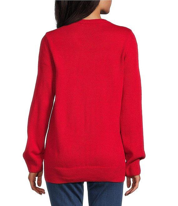 Lisa International Petite Size Crew Neck Long Sleeve Santa Christmas Sweater