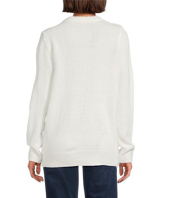 From Lisa International Petite, this sweater features: Furry yarn fabrication Crew neckline Long sleeves with cuffs Sequined front reindeer Loose fit Straight ribbed hemline Pullover construction Acrylic/nylon; exclusive of decoration Hand wash Imported.