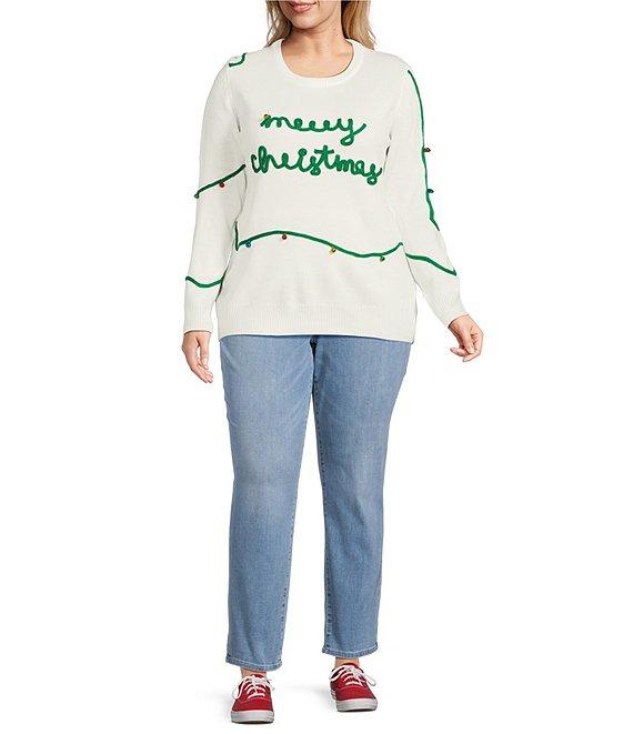From Lisa International Plus, this sweater features: Sweater knit fabrication Crew neckline Long sleeves Applique & embroidery detail at front body Loose fit Ribbed hemline Pullover construction Acrylic; exclusive of decoration Hand wash Imported.