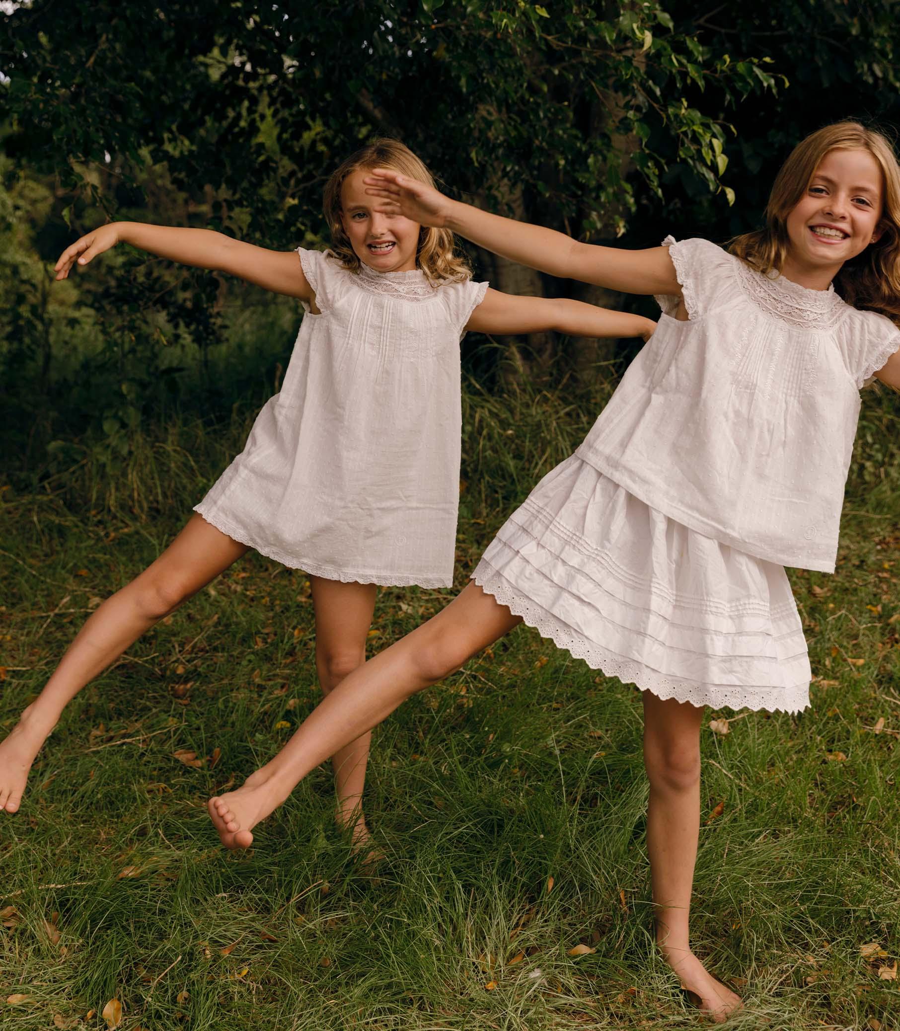 For Spring, we’re excited to introduce a version of our beloved Sebastiane Skirt sized down for littles. With an easy elasticated waist, this organic cotton-poplin skirt is detailed with pintucks and scallop eyelet embroidery, falling just above the knee.
