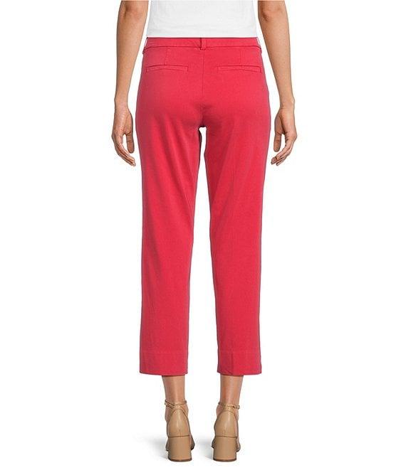 From Liverpool Los Angeles, these pants features: Stretch sateen fabrication Straight leg silhouette Mid rise waistband 4-pocket style Belt loops Button/zip fly closure Approx. 26" inseam; 14.25" leg opening; 9.25" front rise; 14.75" back rinse Cotton/rayon/spandex Machine wash Imported.