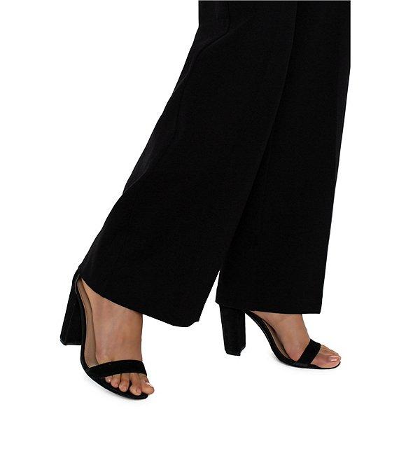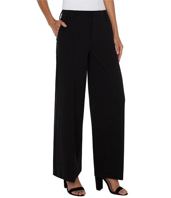 From Liverpool Los Angeles, these trousers feature: super stretch Ponte fabrication wide leg silhouette set-in waistband slanted side pockets faux welt back pocket front zipper with hook & eye closure approx. 31" inseam rayon/nylon/spandex machine wash/tumble dry Imported.