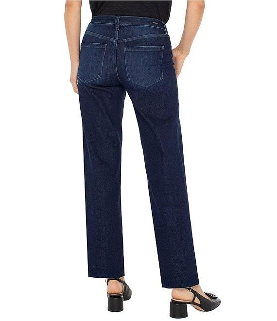 From Liverpool Los Angeles, these jeans feature: Stretch denim fabrication Straight leg silhouette Belt loops 5 pocket styling Mid rise Ankle length Front button and zipper closure Approx. 32" inseam, 16" leg opening, front rise: 9.5", back rise: 14.5" Cotton/polyester/spandex Machine wash Imported. A straight-leg classic with a sleek, refined finish. The mid-rise fit and clean indigo wash make it endlessly versatile. Pair it with anything from crisp shirting to laid-back knits.