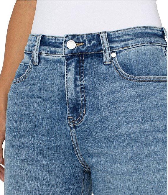 From Liverpool Los Angeles, these jeans feature: Denim fabrication Wide-leg silhouette 5 pocket styling Belt loops High rise Zip fly with button closure Approx. 30" inseam Cotton/lyocell/polyester/spandex Machine wash/tumble dry Imported.