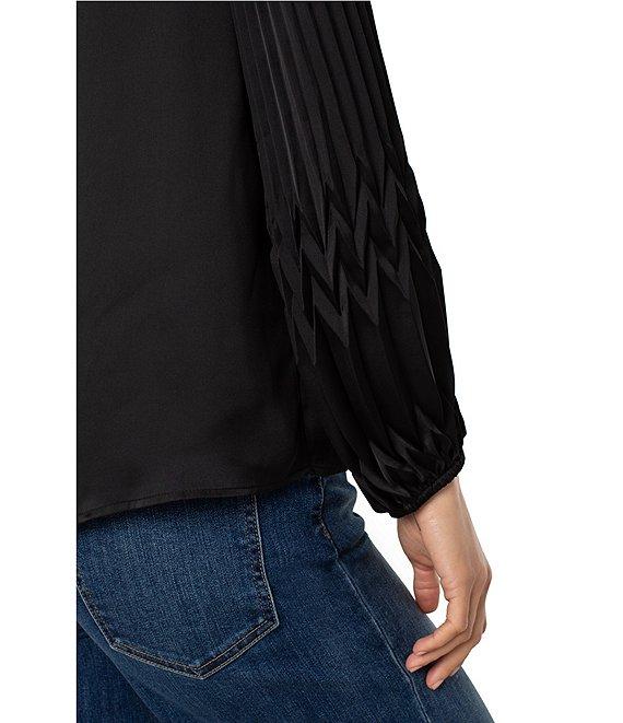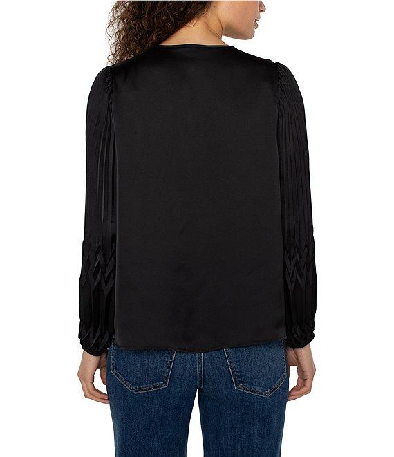 Liverpool Los Angeles Satin V-Neck Long Sleeve Pleated Shirt