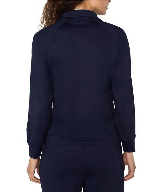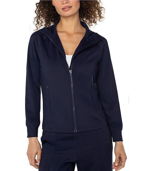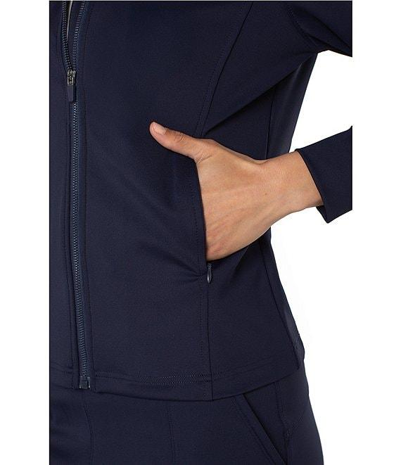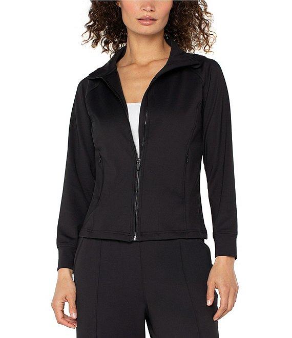 From Liverpool Los Angeles, this jacket features: Tech knit fabrication V-neckline Long sleeves Front functional pockets Straight hemline Front full zipper closure Approx. 23.5" length Nylon/spandex Machine wash Imported.