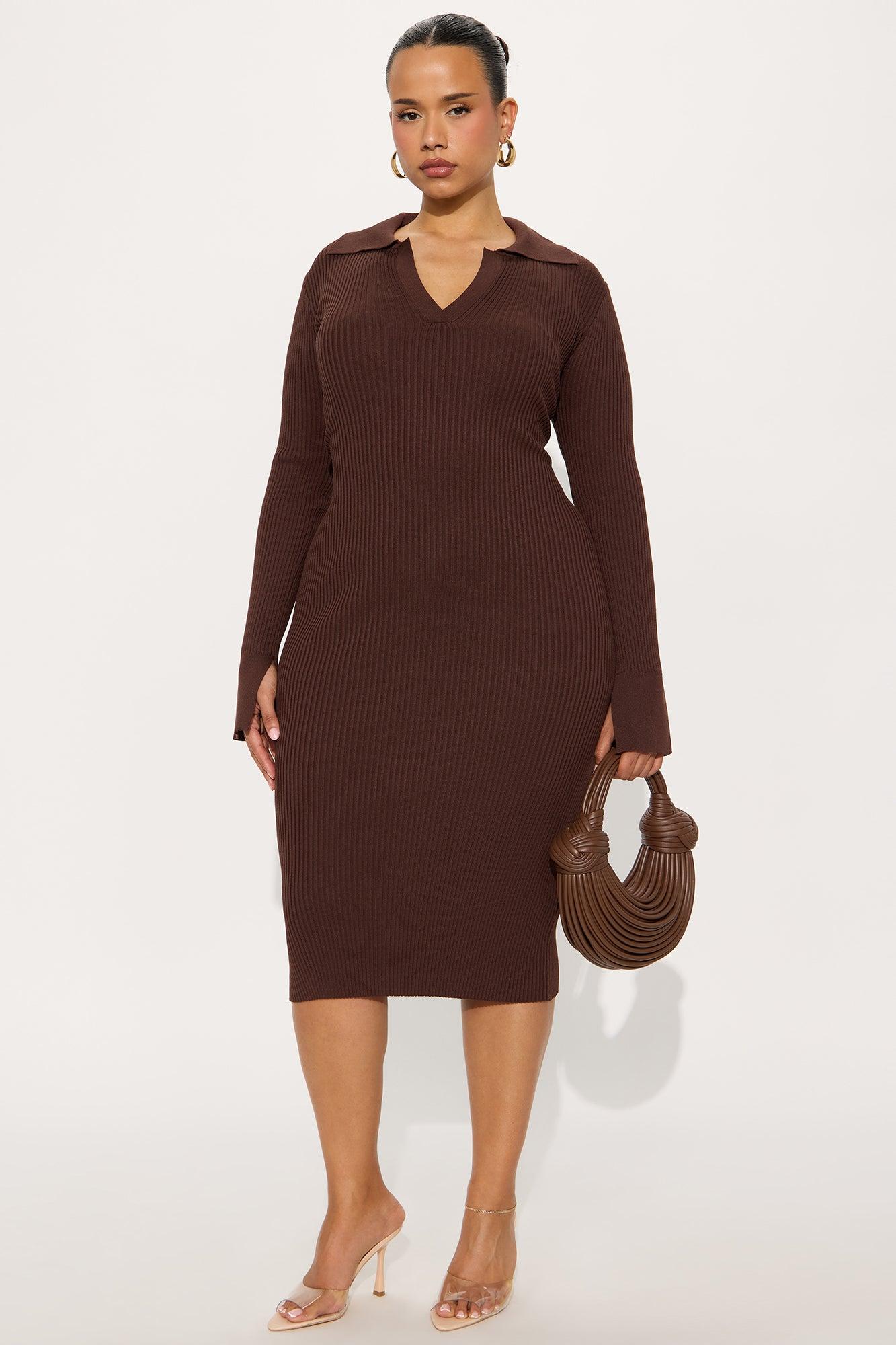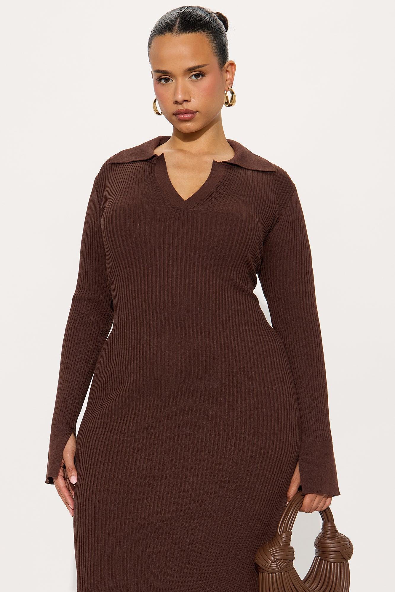 Livia Long Sleeve Ribbed Midi Dress - Chocolate Female