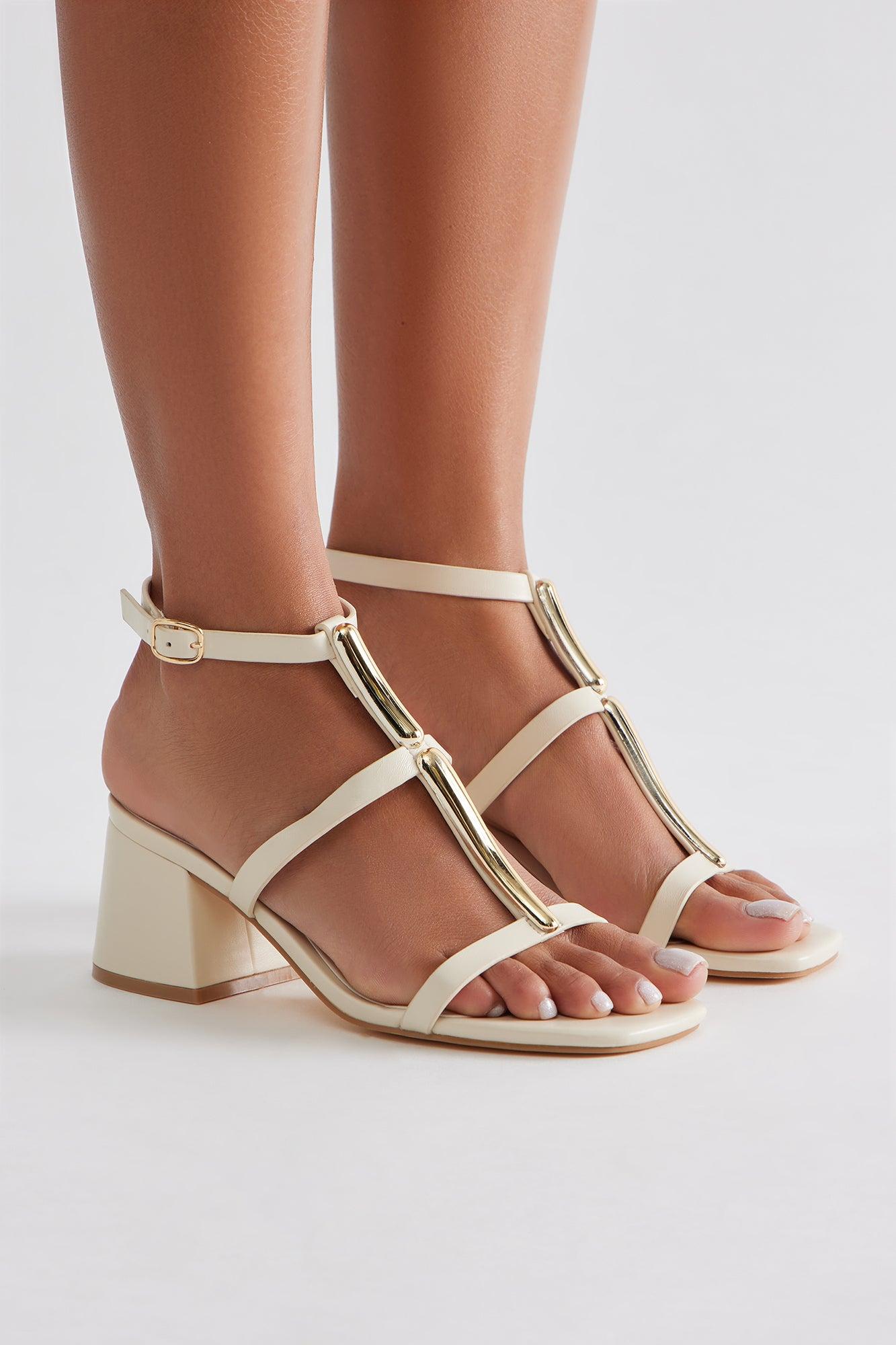Livie Hardware Ankle Strap Heels - Ivory