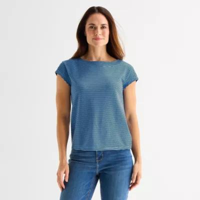 Liz Claiborne Womens Boat Neck Short Sleeve T-Shirt