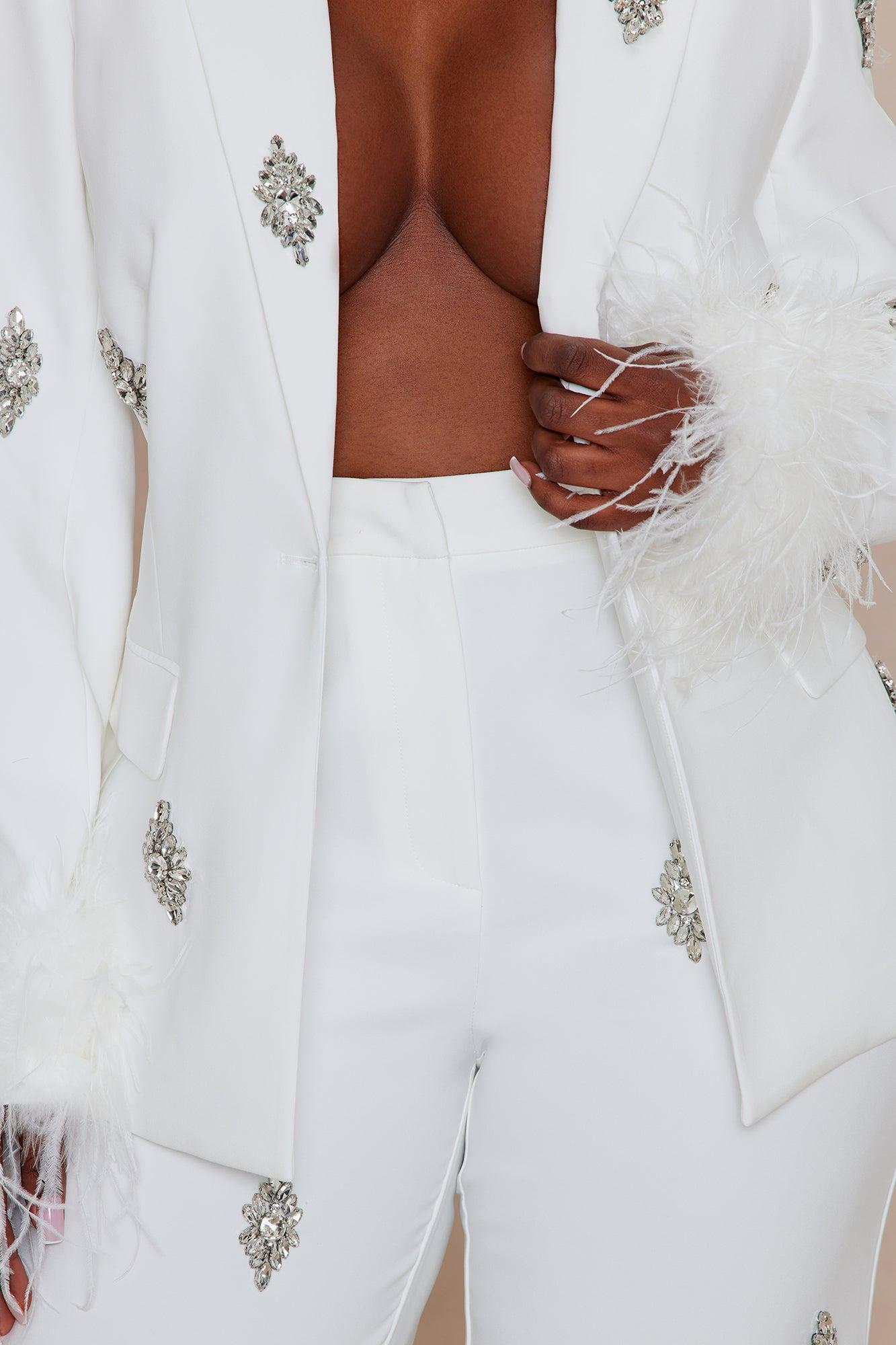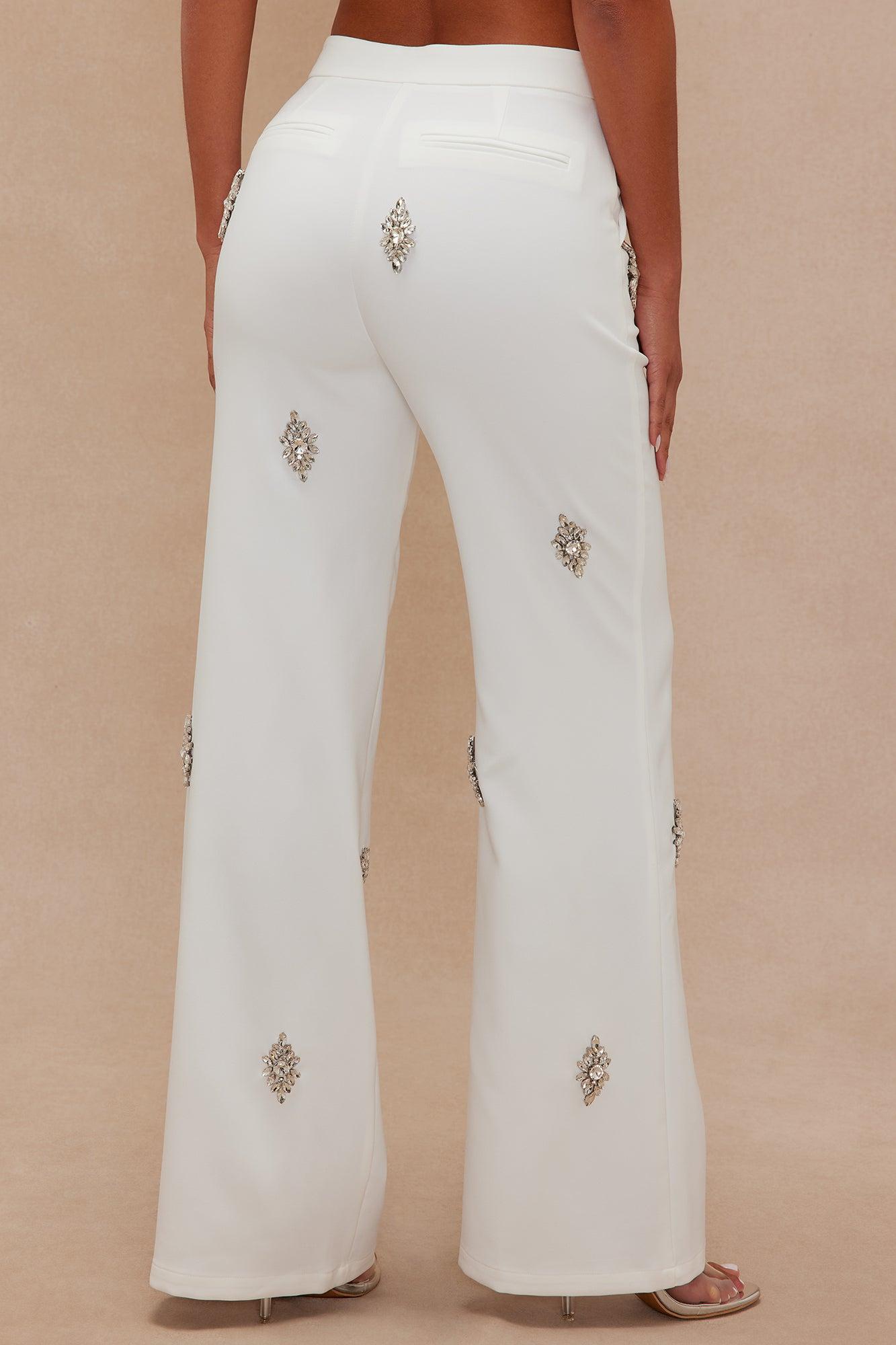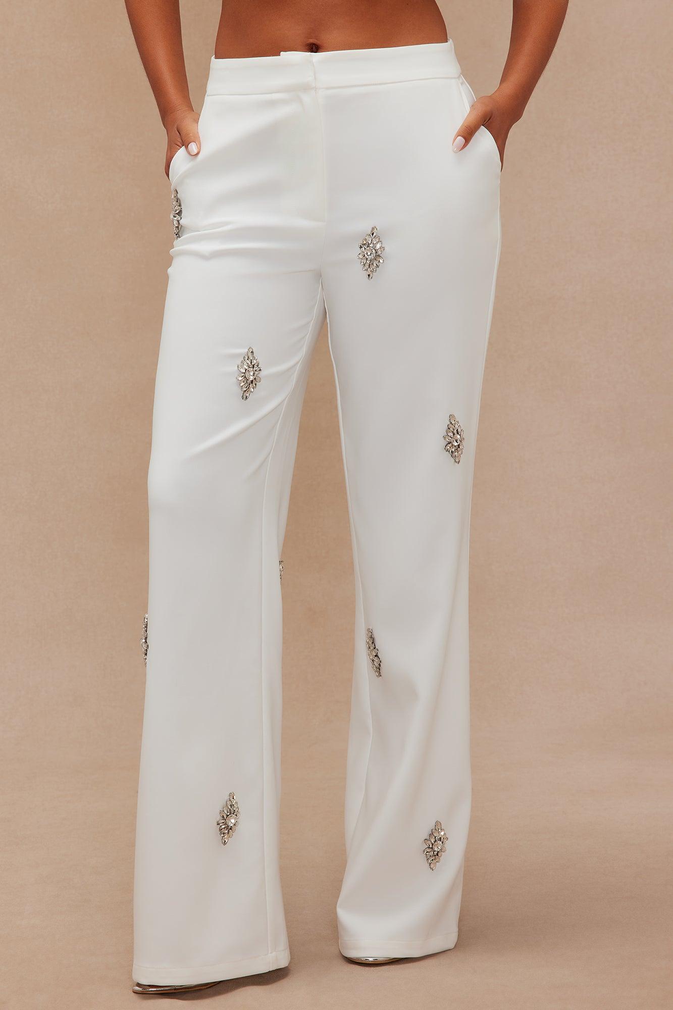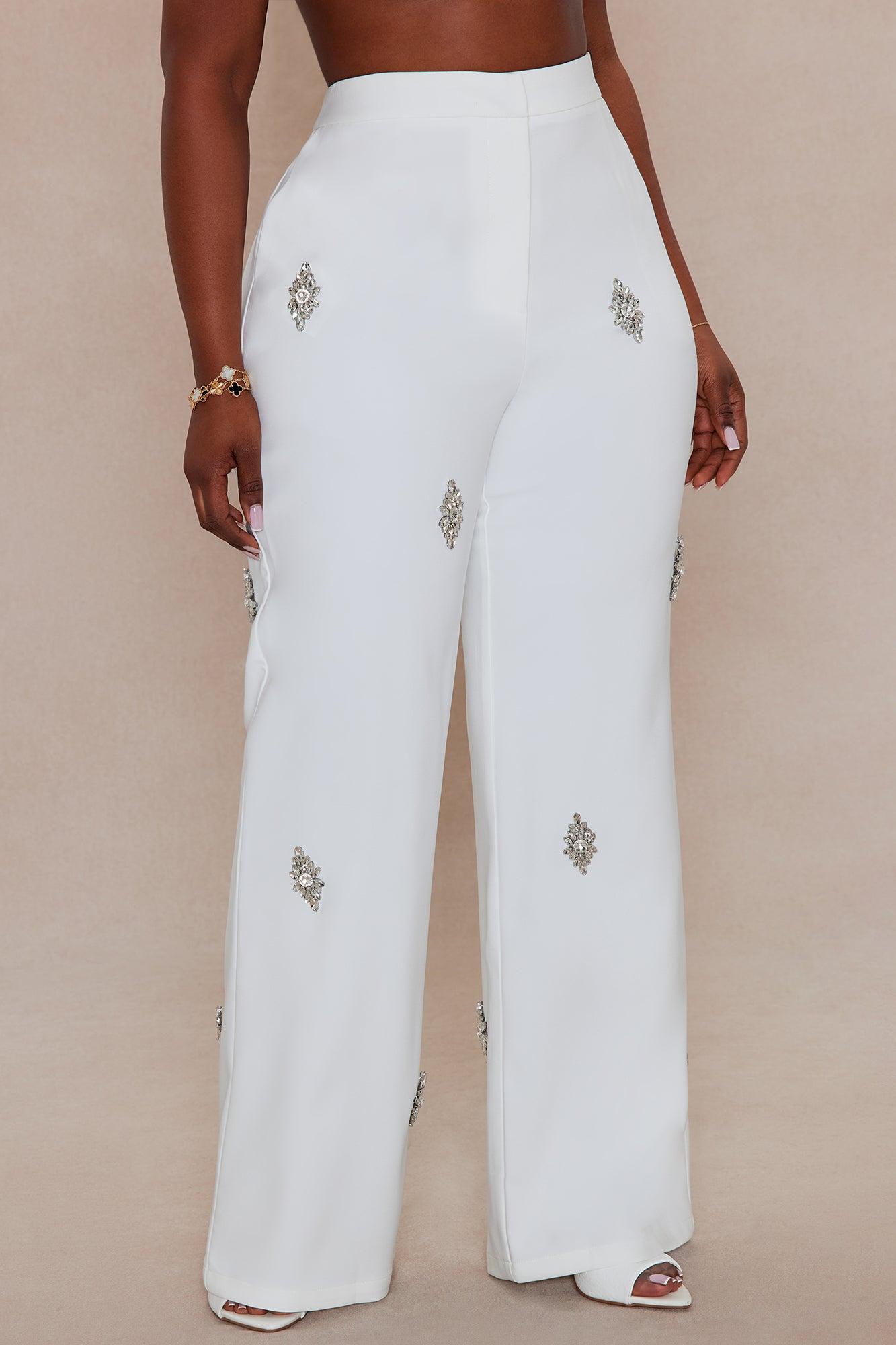 Available In Black And White. Pant Rhinestone Embellishments Pockets Back Faux Pockets Front Hook And Zipper Closure Stretch Shell: 95% Polyester 5% Spandex Imported