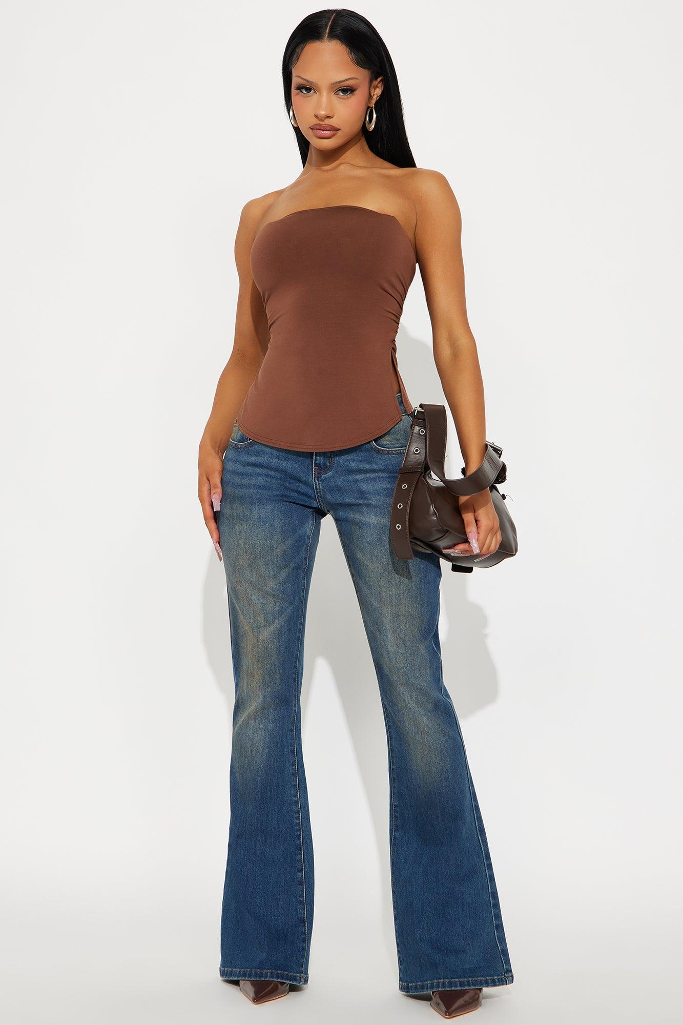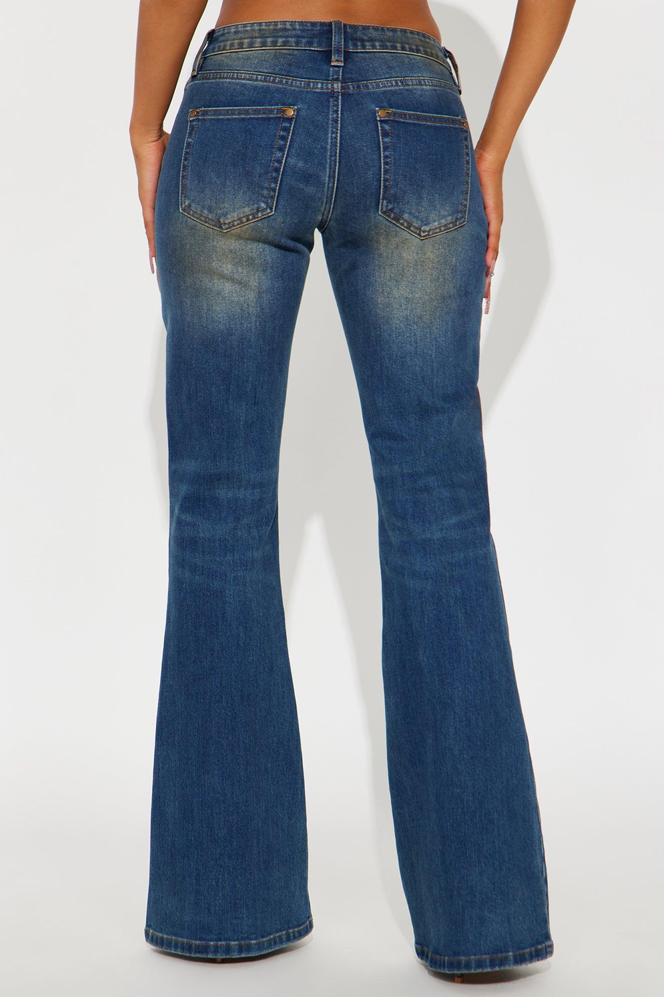 Available In Dark Wash. Flare Leg Jean 5 Pocket Tinted 8.5" Low Rise 34" Inseam Medium Stretch Disclaimer: Due To The Specialized Wash, Each Garment Is Unique. 65% Cotton 33% Polyester 2% Spandex Imported California Proposition 65WARNING: Cancer and Reproductive Harm - www.P65Warnings.ca.gov.