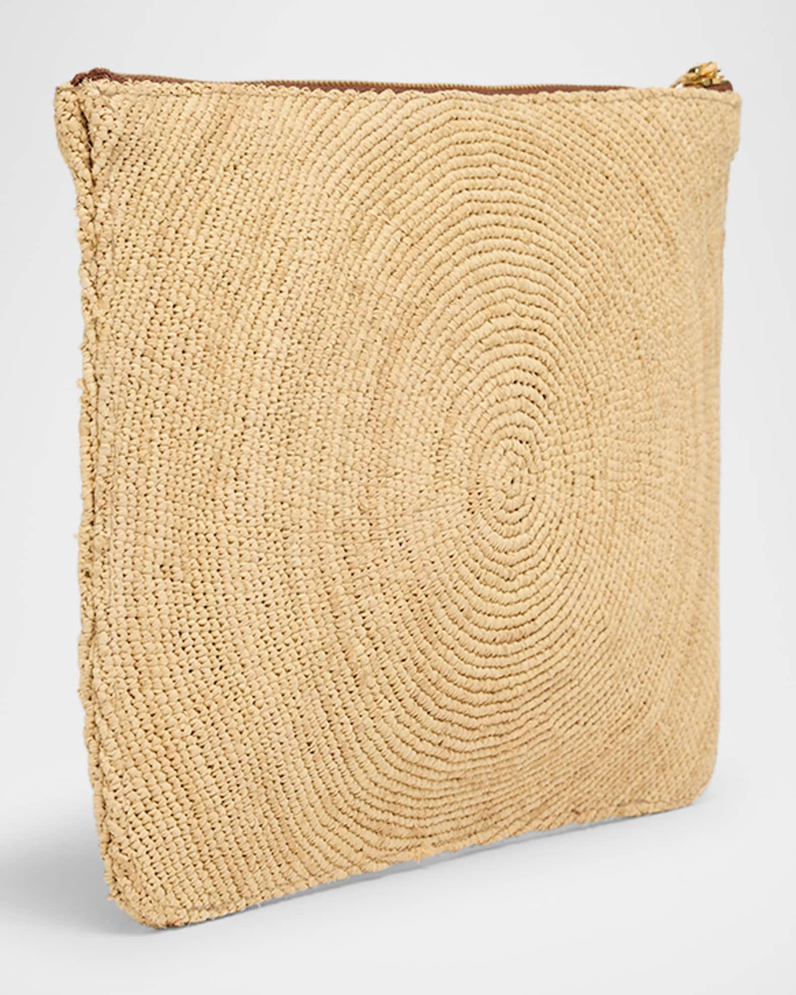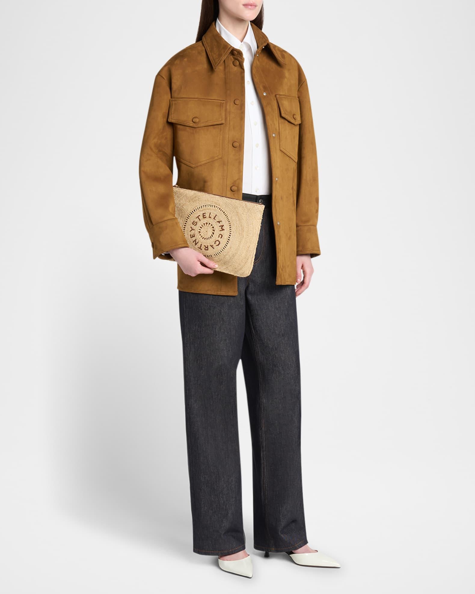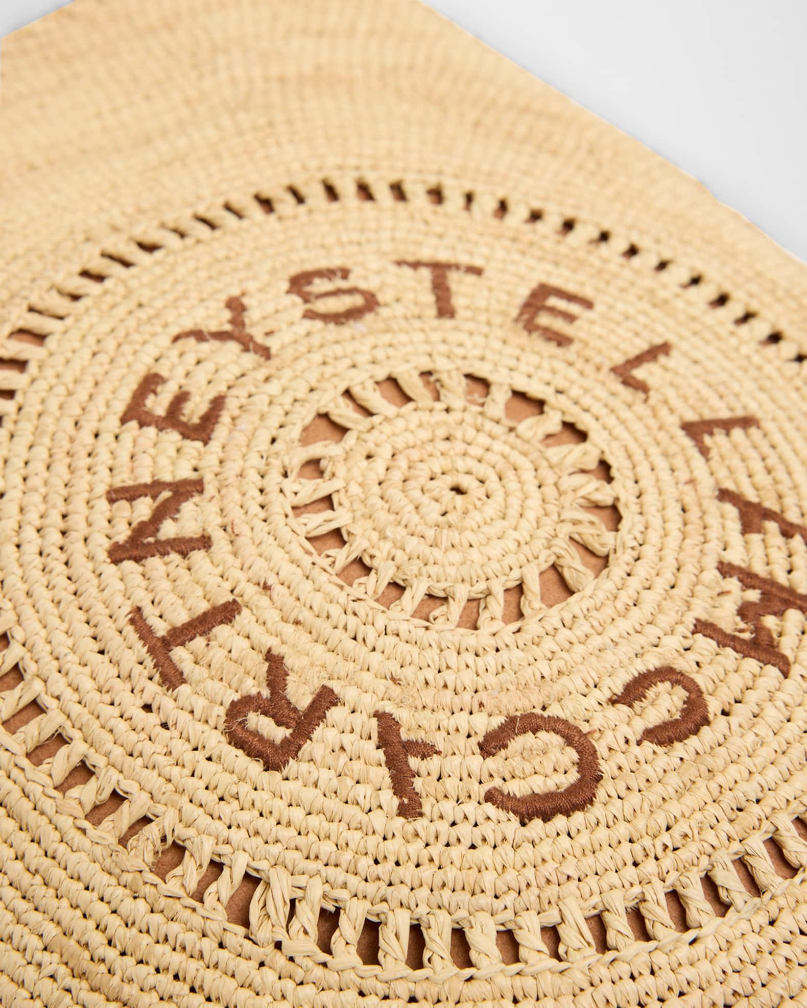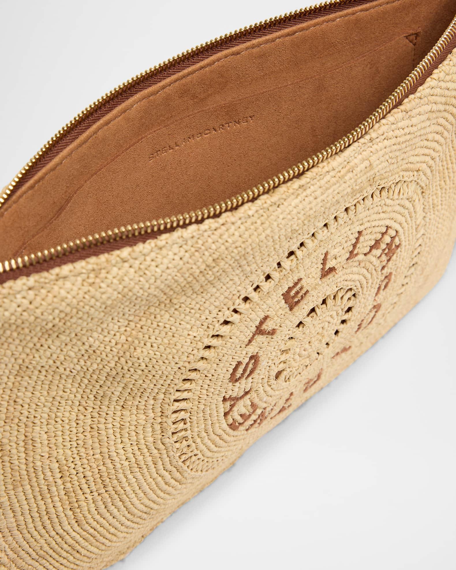 Stella McCartney natural crochet raffia and fabric pouch bag with hand-embroidered logo Zip top closure Interior, one slip pocket GOTS-certified organic cotton lining Stainless steel and recycled brass hardware Approx. 8.5"H x 12.2"W x 0.4"D Nylon Spot clean Made in Italy