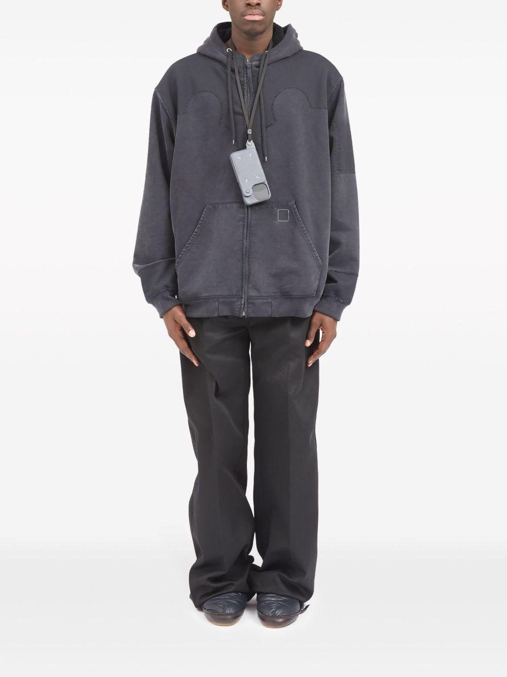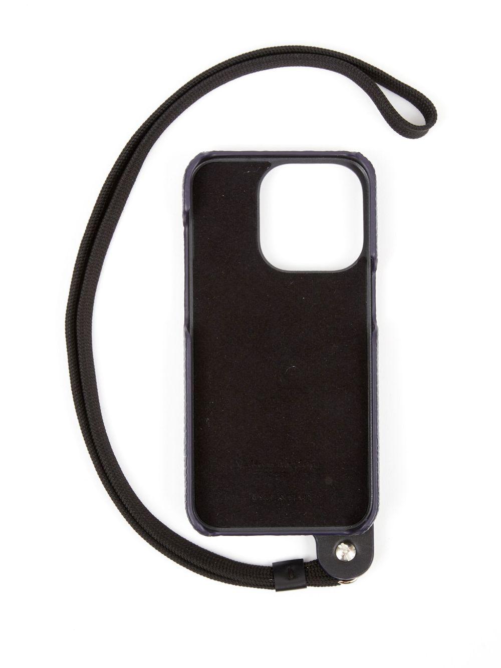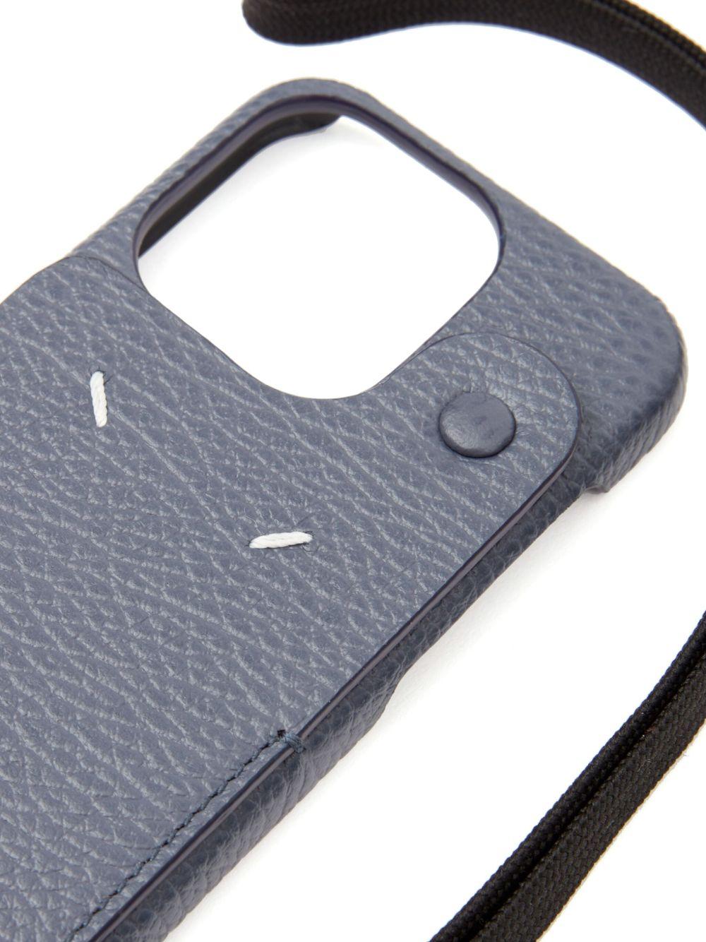 Maison Margiela logo-embroidered leather phone case | Blue | light blue | calf leather | grained texture | signature four-stitch logo | embroidered logo | fabric strap | button-fastening pocket | Calf Leather | Phone Cases & Technology | Accessories | Women | Phone Cases & Technology | Accessories | Men