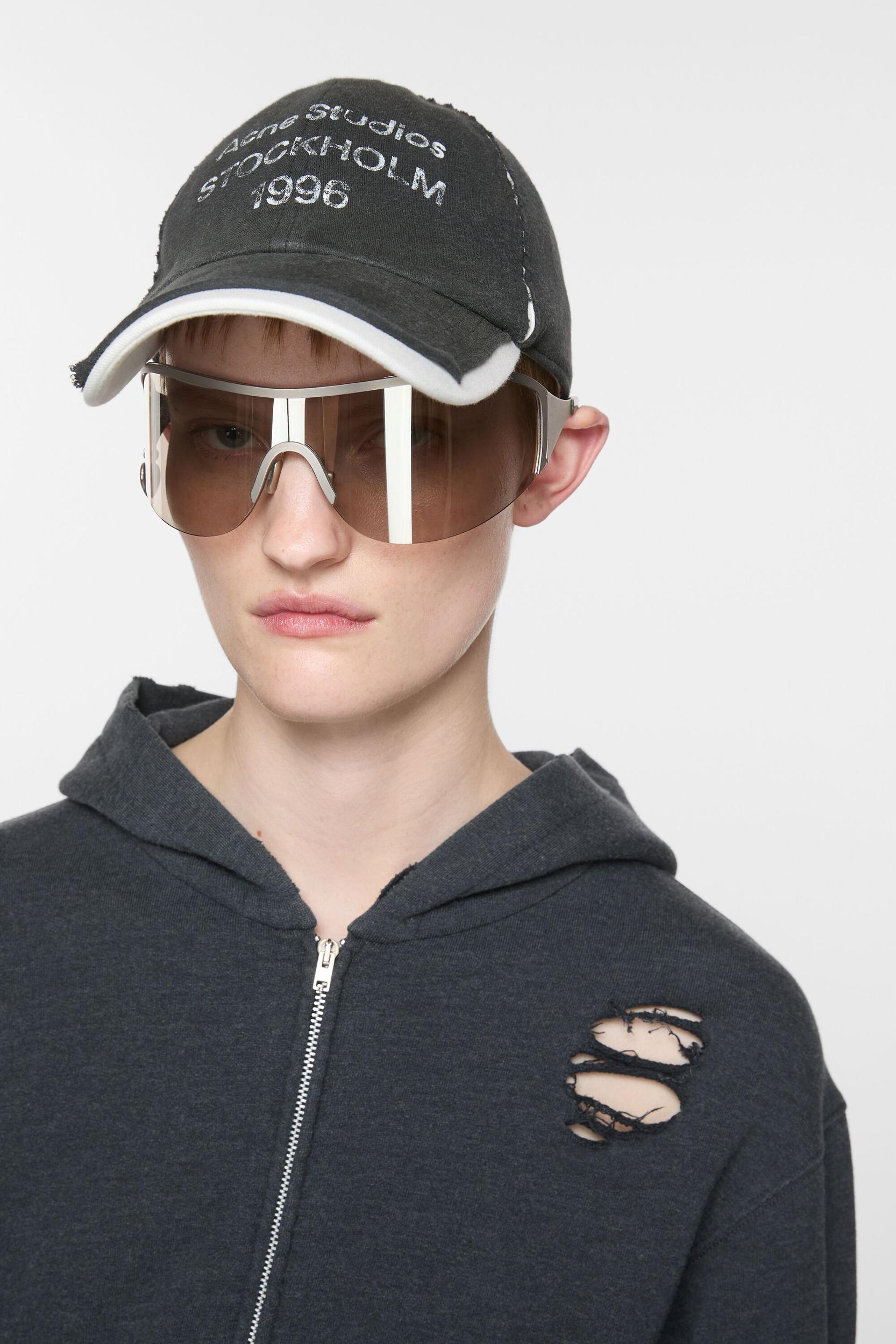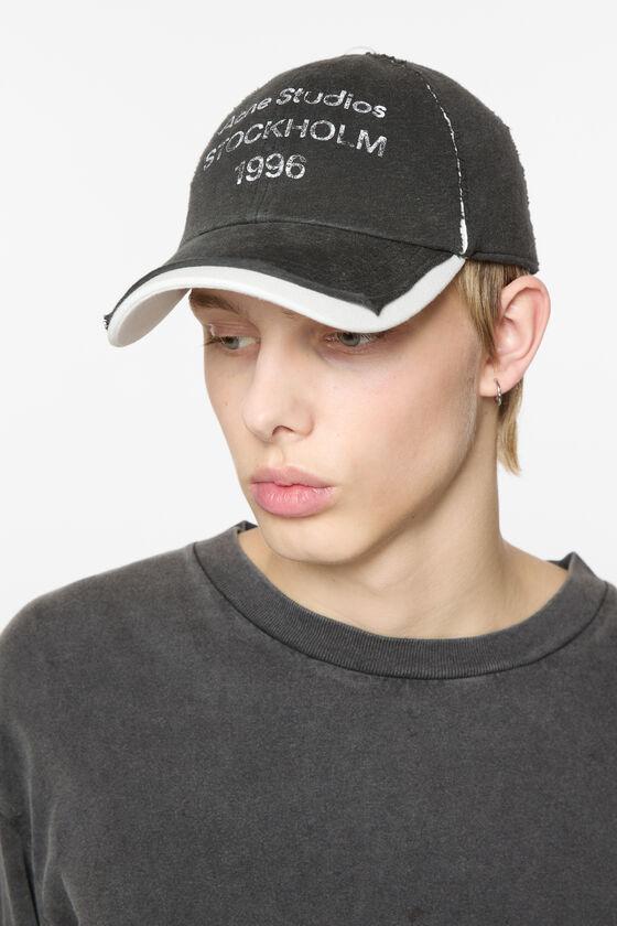 Six-panel baseball cap features a branded Acne Studios logo stamp, crafted from cotton twill with a washed finish. FN-UX-HATS000289