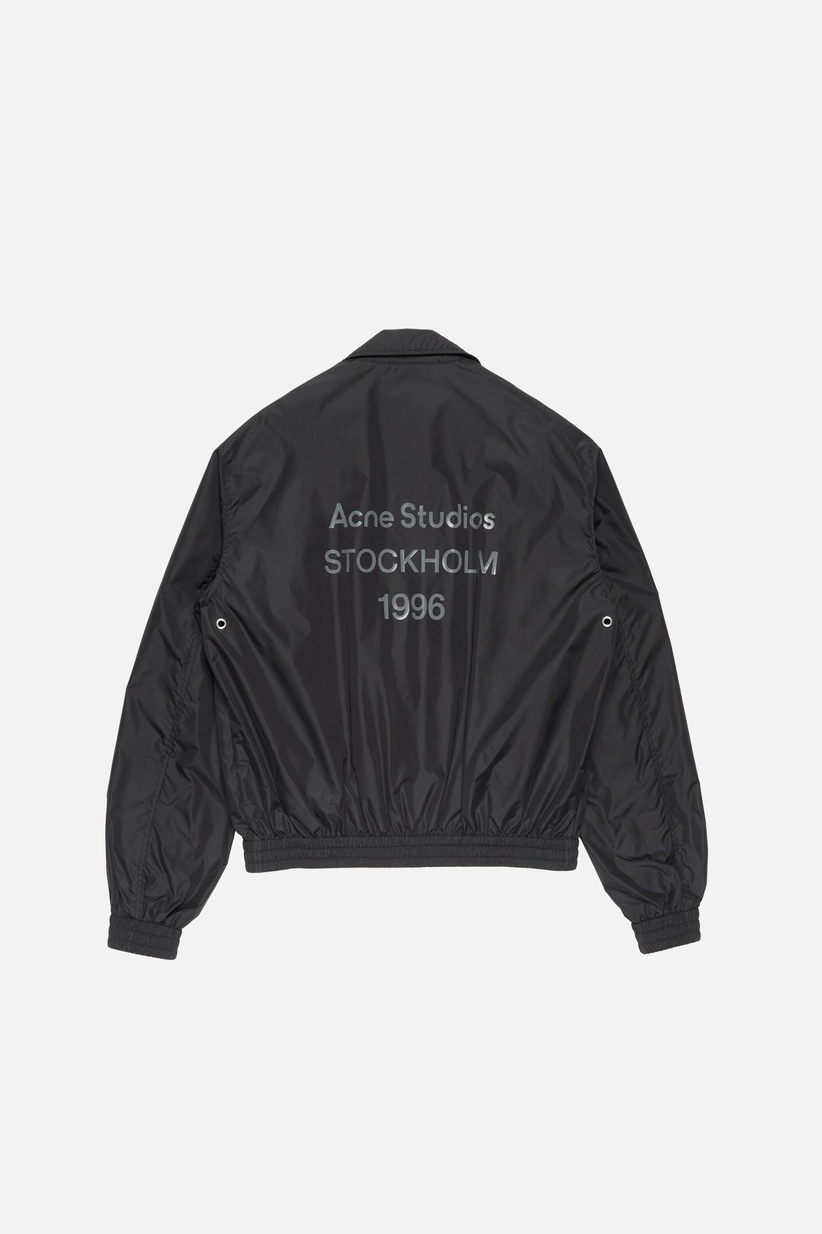 Jacket with collar featuring the Acne Studios 1996 logo on the back, crafted from lightweight, clean nylon with a papery texture and semi-shiny finish. Complete with side seam pockets and elasticated cuffs and hem. Cut to a regular fit and below-waist length. FN-MN-OUTW001277