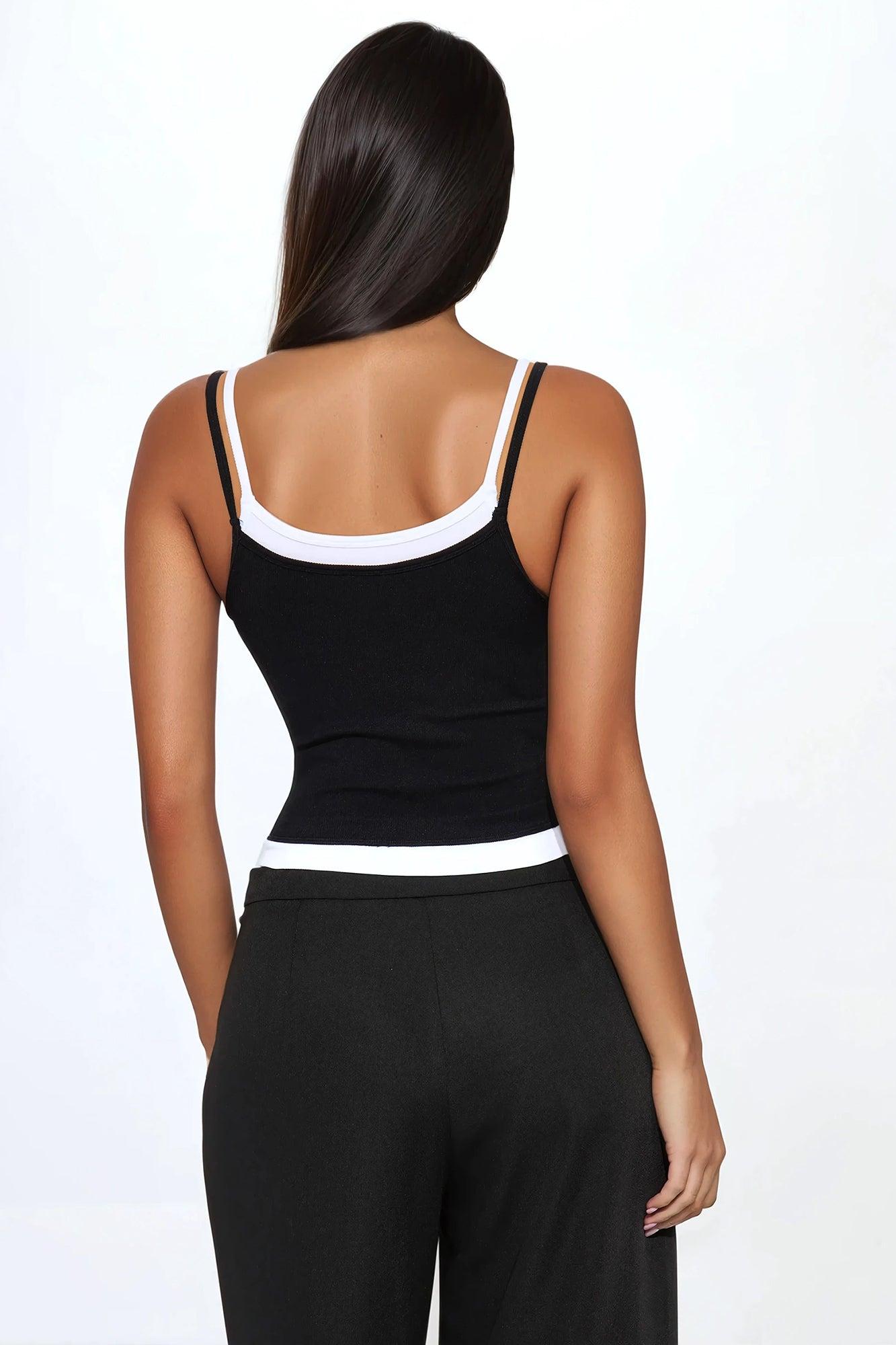 Available In Green, Black, And White. Ribbed Cami Top Stretch Colorblock Bow Deetail Cropped Self: 92% Nylon 8% Spandex Imported California Proposition 65 WARNING: Cancer and Reproductive Harm - www.P65Warnings.ca.gov.