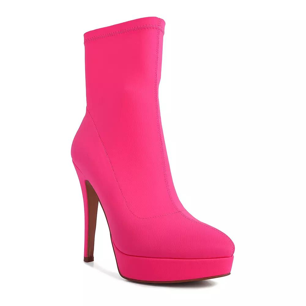 Add a pop of color to your attire with these London Rag Patotie high heel ankle boots. Click this FOOTWEAR GUIDE to find the perfect fit and more! - https://www.kohls.com/feature/shoesizeguide.jsp. SHOE FEATURES: Sleek design, Durable rubber outsole, Zipper closure for a secure fit. SHOE CONSTRUCTION: Lycra upper, Polyester lining, Polyurethane midsole, TPR outsole. SHOE DETAILS: Pointed toe, Zipper closure, Padded footbed, 3.5-in. heel height, 1-in. platform height, 5.866-in. shaft, 9.134-in. circumference, Spot clean, Imported. Size: 6. Color: Fuchsia. Gender: female. Age Group: adult. Material: SYNTHETIC.