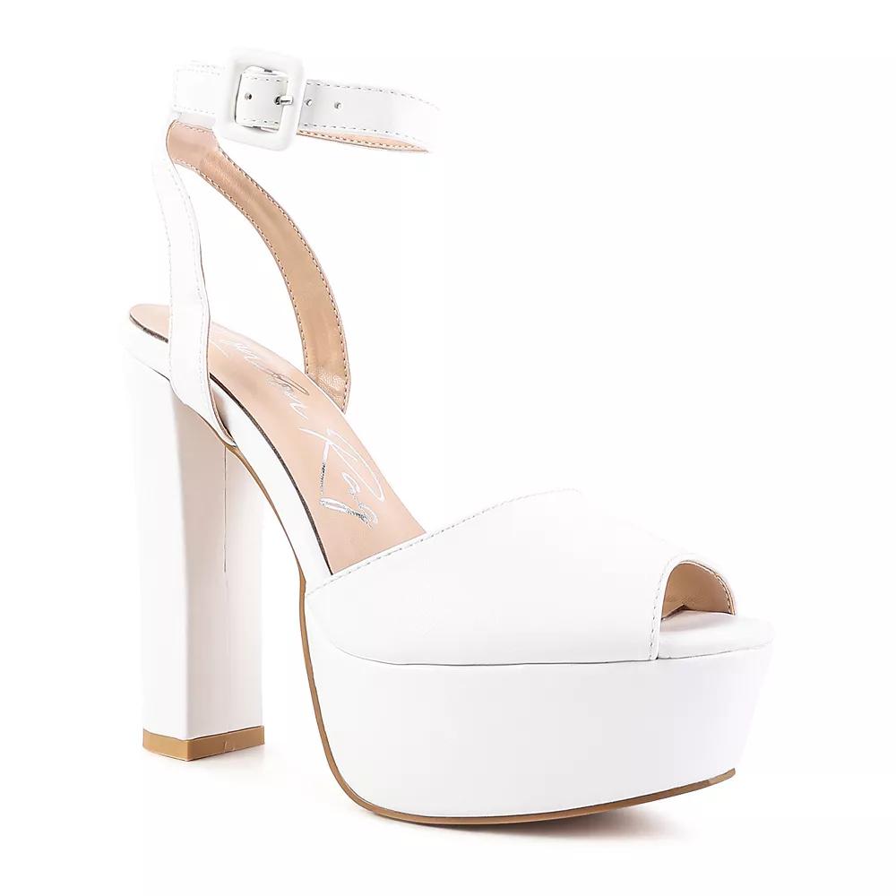 Stand tall in these fashion-forward London Rag Rager women's platform block heel sandals. Click this FOOTWEAR GUIDE to find the perfect fit and more! - https://www.kohls.com/feature/shoesizeguide.jsp. SHOE FEATURES: Block heel and peep toe design, Ankle buckle closure for a secure fit. SHOE CONSTRUCTION: Faux leather upper, Polyurethane lining and midsole, TPR outsole. SHOE DETAILS: Peep toe, Buckle closure, Padded footbed, 5-in. heel, 1.2-in. platform. Size: 7.5. Color: White. Gender: female. Age Group: adult. Material: SYNTHETIC.