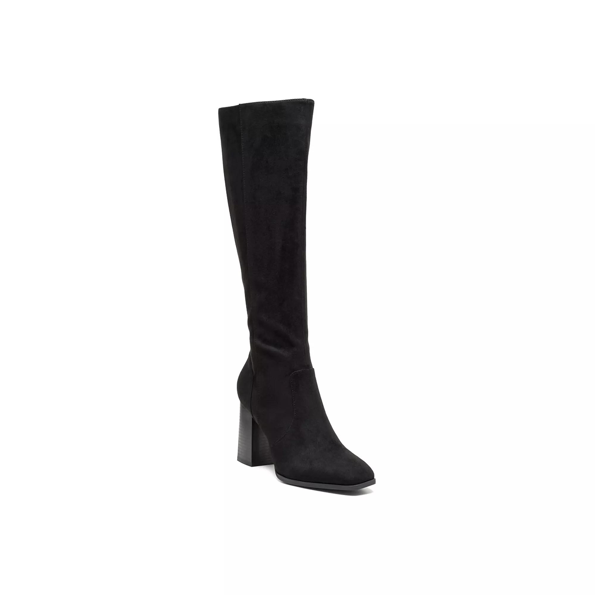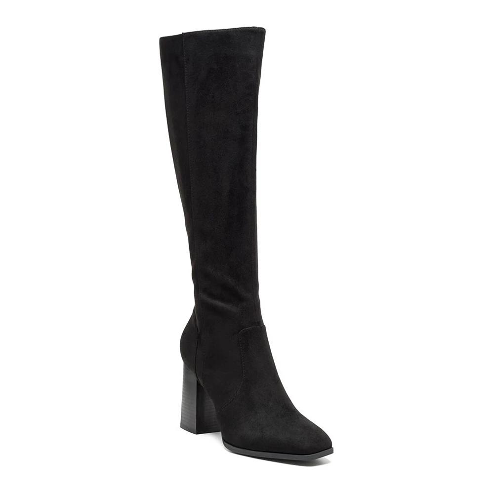 Step into style with these London Rag Zilly women's knee-high boots. Click this FOOTWEAR GUIDE to find the perfect fit and more! - https://www.kohls.com/feature/shoesizeguide.jsp. SHOE FEATURES: Block heel, Side zipper for easy on and off. SHOE CONSTRUCTION: Faux leather upper, Microfiber lining, TPR outsole. SHOE DETAILS: Square toe, Zipper closure, Padded footbed, 3.5-in heel, 0.39-in. platform, 15.3-in. Shaft, 11.02-in. Circumference. Size: 10. Color: Black. Gender: female. Age Group: adult. Material: SYNTHETIC.