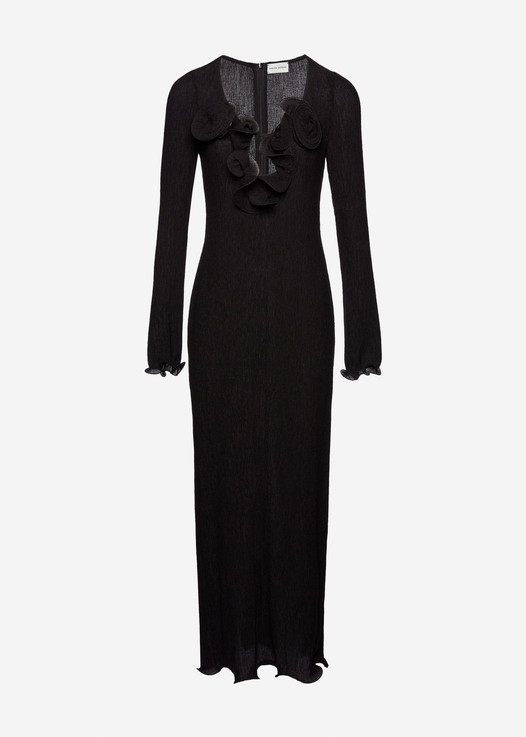 Long sleeve crepe beach maxi dress in black