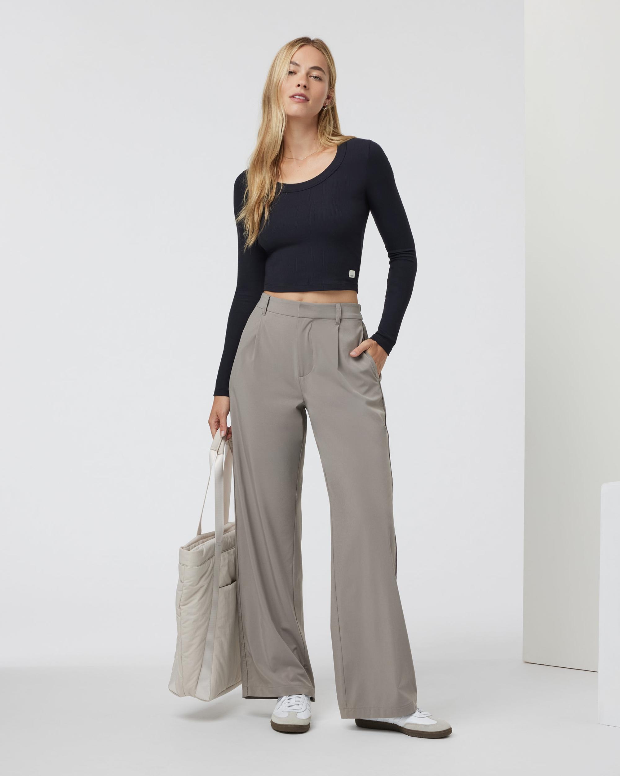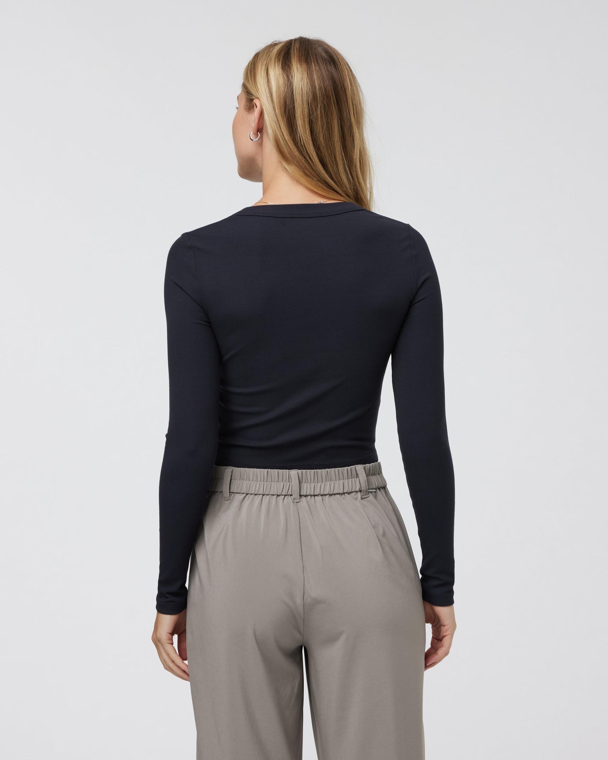 The Long Sleeve Pose Scoop Tee in Black pairs perfectly with your favorite leggings. Shop this women's rib knit long-sleeve top from Vuori.