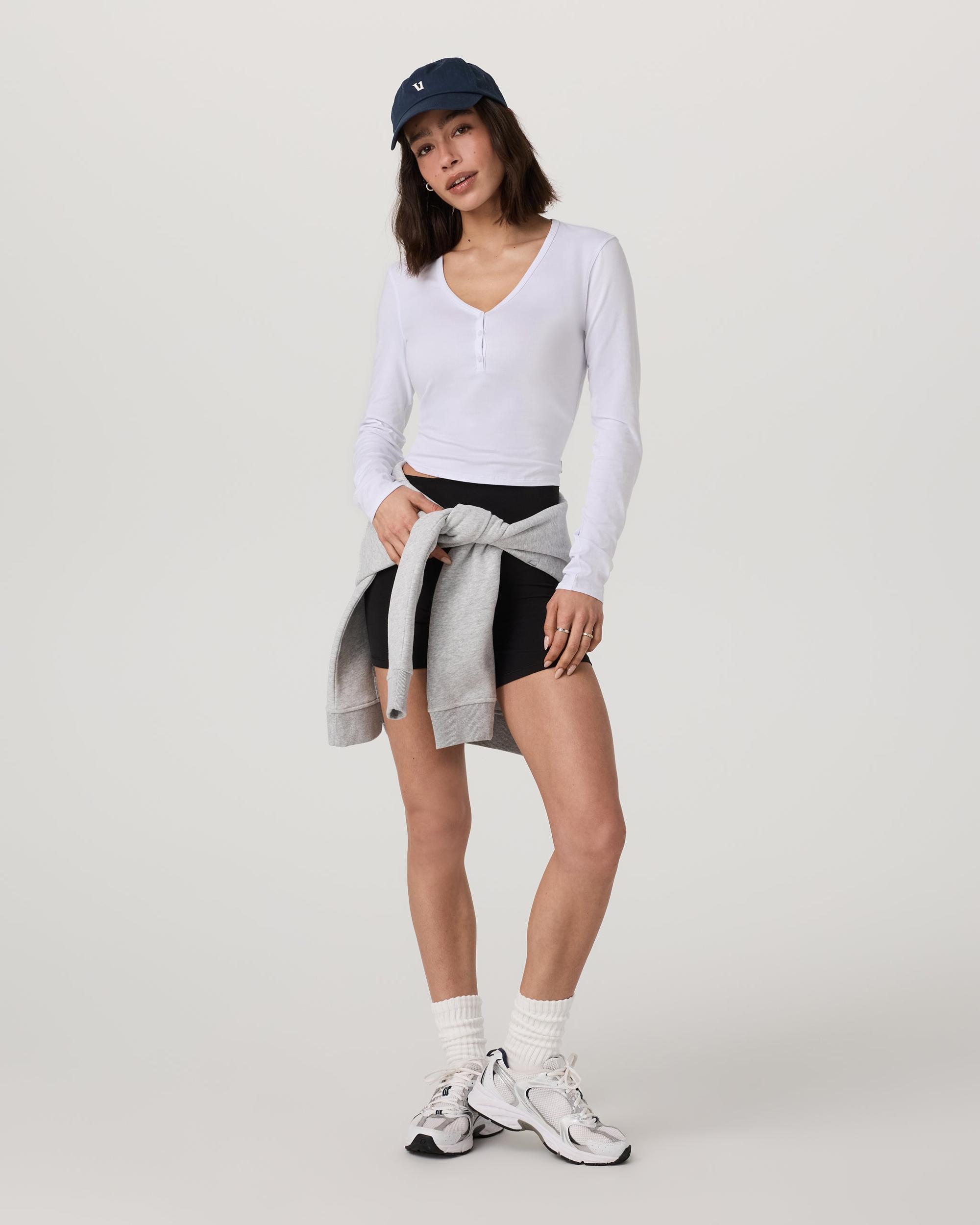 Shop the Long Sleeve Tuvalu Henley in White. This women’s henley shirt offers a soft stretch fit, V neckline & button placket for everyday layering.