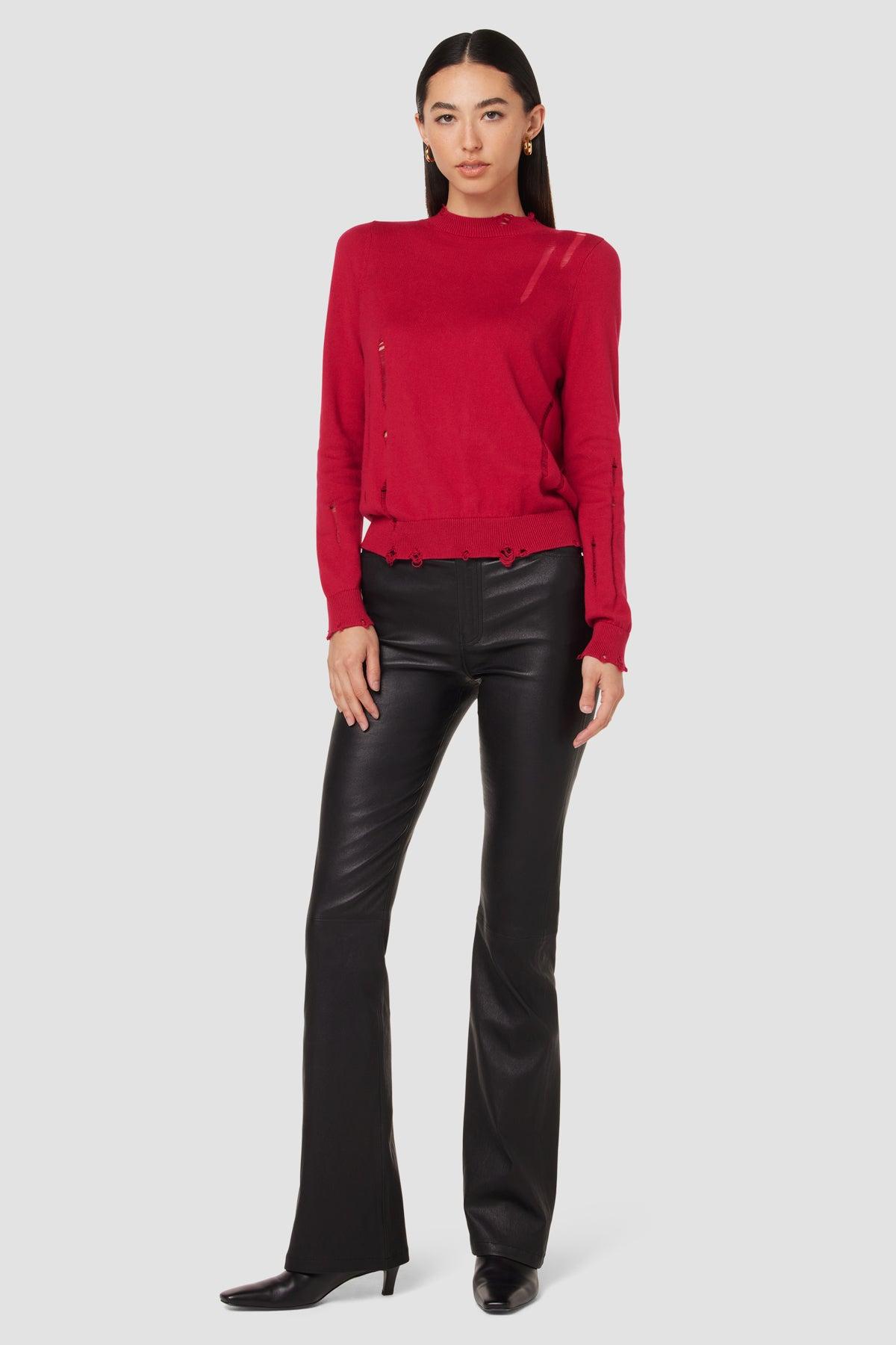 Description Our Long Sleeve Twist Back Sweater in Cranberry is cut for a classic fit from a cotton-cashmere blend with vintage-feel destruction. Product Details Body Length: 22.5", Chest: 39", Sleeve Length: 24.5"Model Height 5’9"Model wearing size SMeasurements based on size S Fit & Care Content: 95% Cotton, 5% Cashmere Knit TopMachine wash cold with like colorsDo not bleachTumble dry low or hang to dry