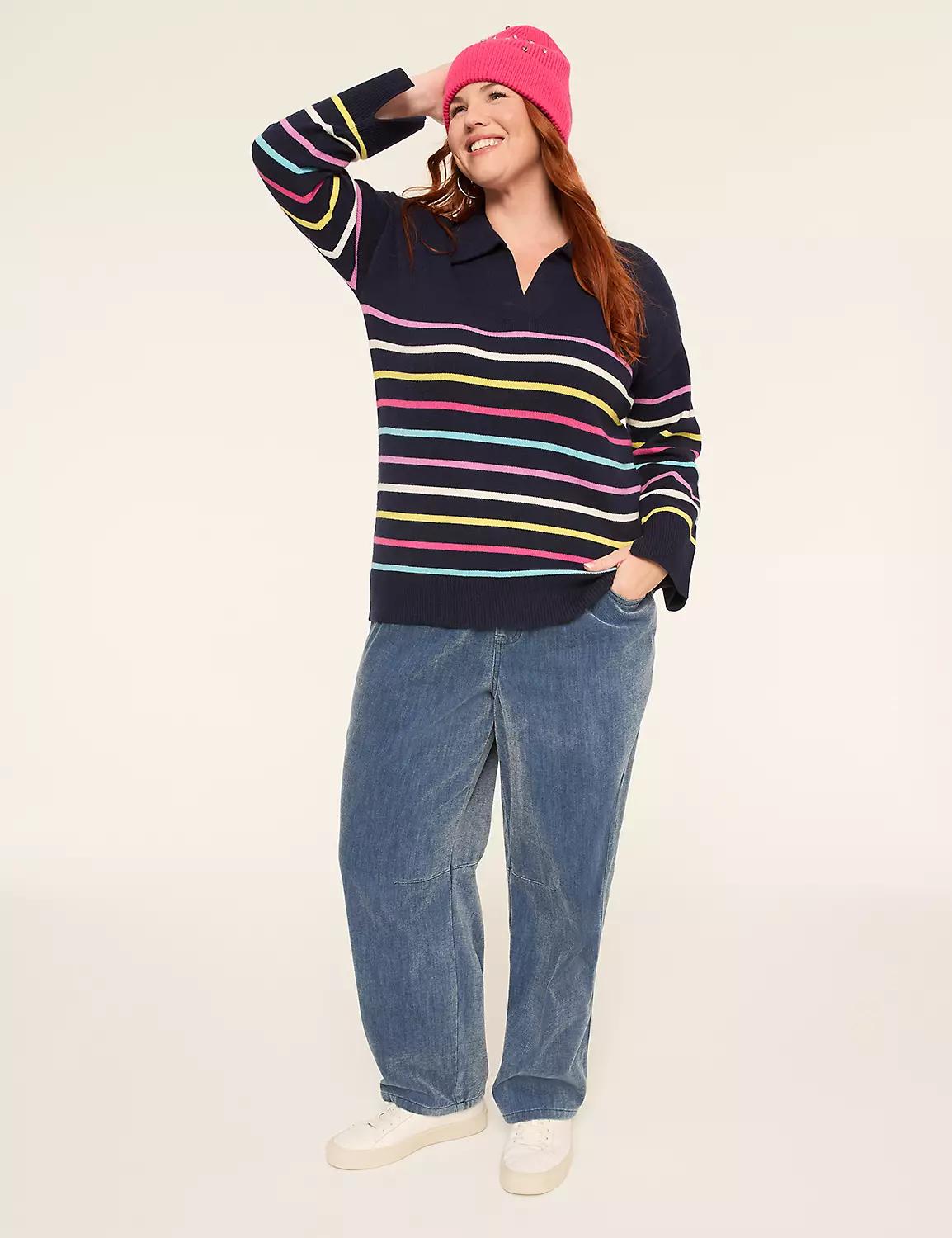 Long-Sleeve V-Neck Collar Sweater