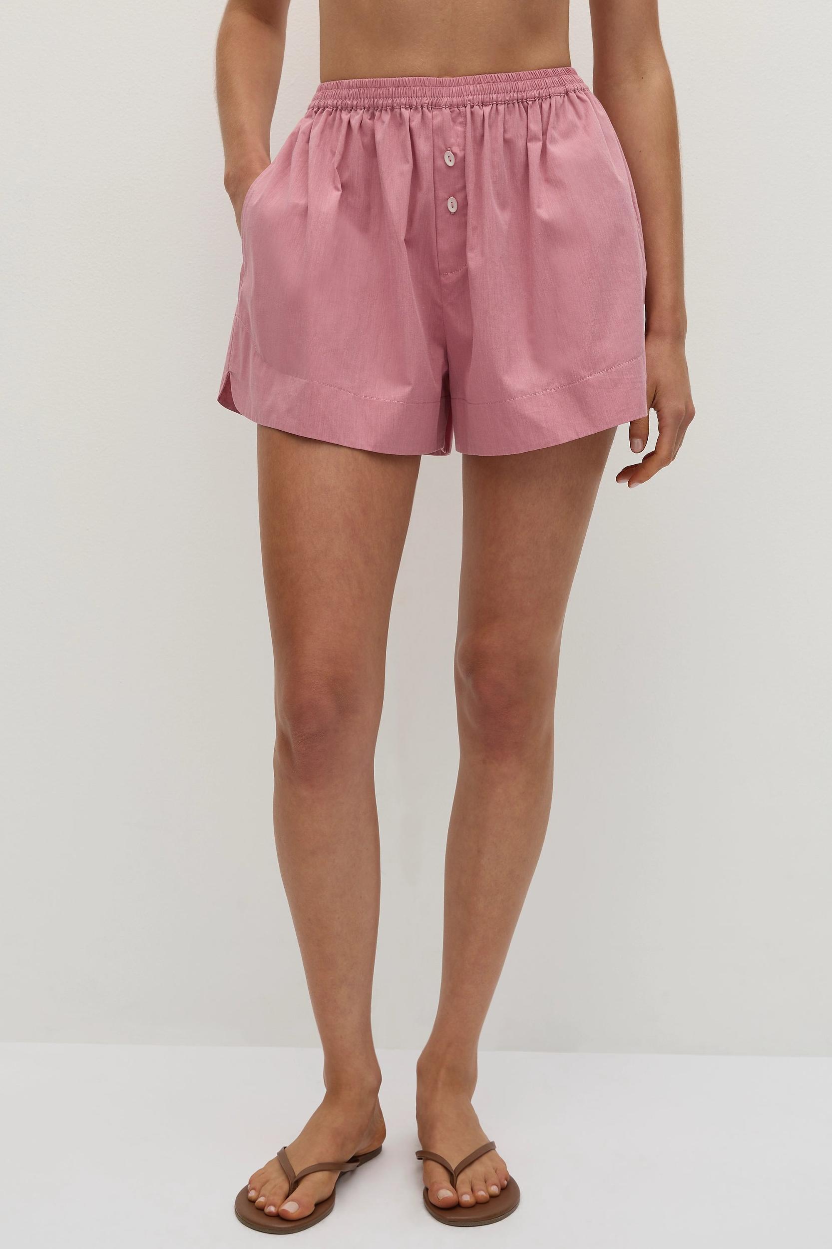 A boyfriend-style boxer short with a front fly detail and buttons, designed from a signature 100% organic cotton in a soft valentine pink. With side pockets and a relaxed fit, they offer throw-on throw-off appeal. Style with the En Vau Shirt for effortless everyday wear, it is the perfect segueway to embracing pink tones in your summer wardrobe. This style is true to size. The elasticated waist offers additional stretch. The front fly is mocked.