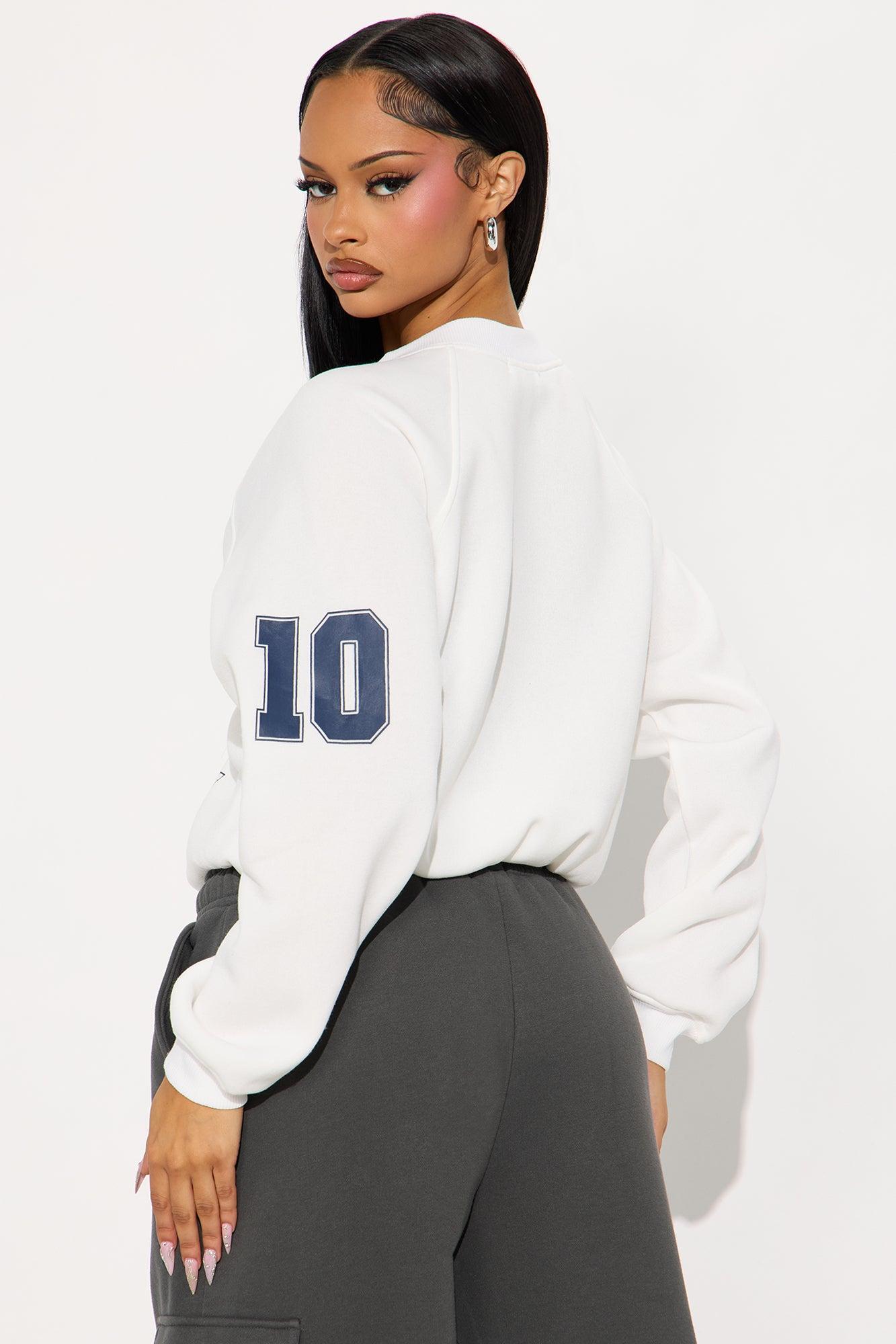 Available In Ivory. Sweatshirt Crew Neck Long Sleeve V Neck Front Screen Disclaimer: Due To The Printing Process A Difference In Saturation May Occur. Each Garment Is Unique. Self: 100% Polyester Rib: 95% Polyester 5% Spandex Imported