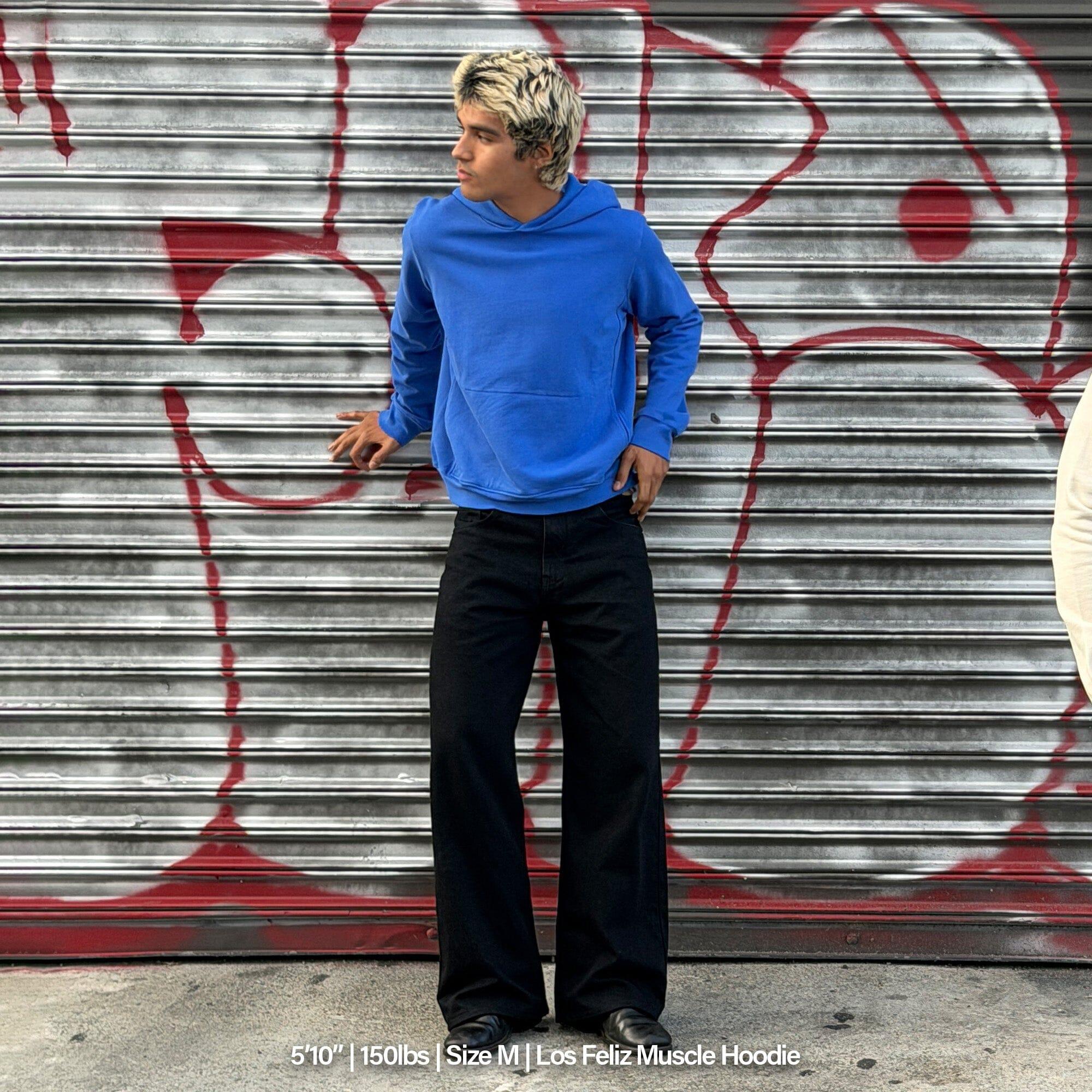 A refined evolution of our signature Los Feliz silhouette. Inspired by the fit of our Los Feliz Crop Muscle Tee Long Sleeve, this hoodie is designed to accentuate your physique without feeling restrictive. It features a fitted chest and arms with a slightly relaxed waist for a clean, balanced profile. The cropped length hits just below the belt line, creating a sharp proportion that works perfectly on its own or layered under a jacket or coat. Invisible side pockets are seamlessly built in for a minimal, elevated finish — functional without disrupting the silhouette. Cut from our 18oz heavyweight French Terry Cotton, offering structure, durability, and a premium feel. Made in Los Angeles. Details: Made in Los Angeles. American-Made French Terry Cotton (18oz, 100% Cotton). Fitted Arms + Chest with Relaxed Waist Area. Hidden Connecting Side Pockets. Crop Length near Belt-line. Pre-Washed and Pre-Shrunk. ____ Locally Made. Cut from a custom-knit French Terry developed by our local Los Angeles textile mill with decades of experience in knitwear. It’s not overly plush — just soft enough to feel comforting when you wear it, but with a clean, polished drape that elevates your whole fit. The kind of hoodie that feels like home but looks sharp enough to wear anywhere.