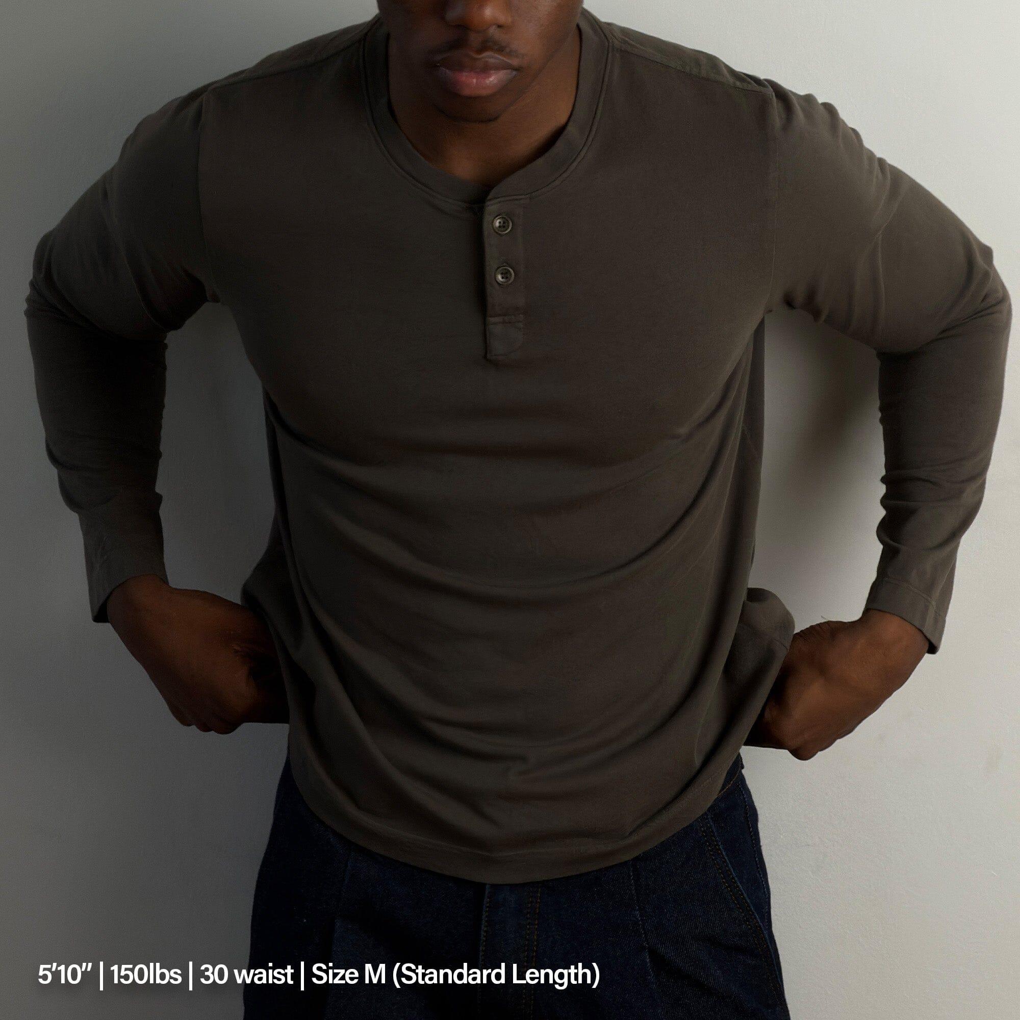 The newest addition to our Los Feliz line takes our best-selling Crop Muscle Tee and reimagines it as a Long Sleeve Henley. The "Los Feliz" Henley keeps our signature cropped length—falling 1 to 2 inches below the waistline—for the same perfect proportion as the original. Fitted through the arms and chest but relaxed around the waist, it creates a naturally muscular silhouette while staying comfortable. Constructed in Los Angeles from premium, ring-spun American-grown 10 oz cotton, this isn’t just a shirt—it’s a carefully engineered piece designed to flatter the body and elevate everyday wear. Details Made in Los Angeles. Midweight American Cotton (10oz, 100% Cotton). Fitted Arms + Chest with Relaxed Waist Area. Crop Length just below Belt-line (Available in Short and Standard Crop Lengths*). Pre-Washed and Pre-Shrunk. * Short Length is -1.5 inches shorter than our Standard Crop Tee.