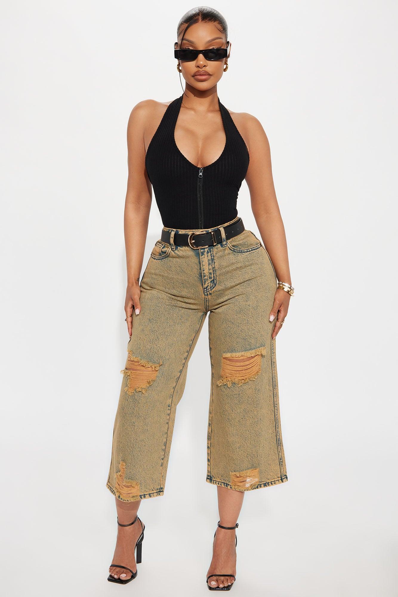 Available In Vintage Wash. Wide Leg Jean 5 Pocket Cropped Tinted Destructed 11" Rise 22" Inseam Non Stretch Discalimer: Due To The Specialized Dye Process Each Garment Is Unique. 100% Cotton Imported California Proposition 65WARNING: Cancer and Reproductive Harm - www.P65Warnings.ca.gov.