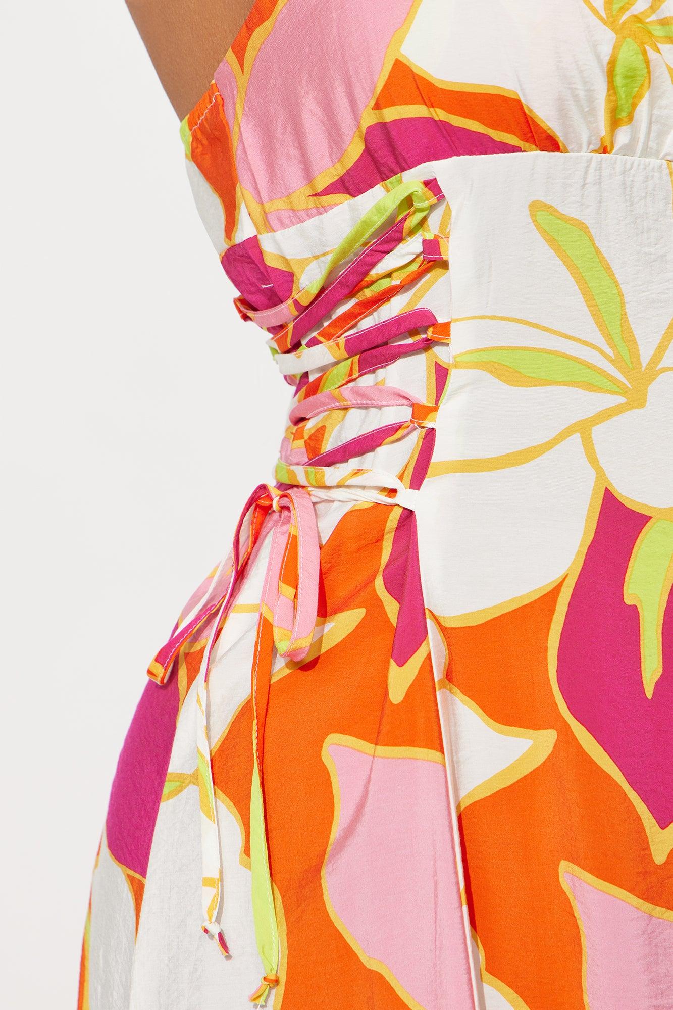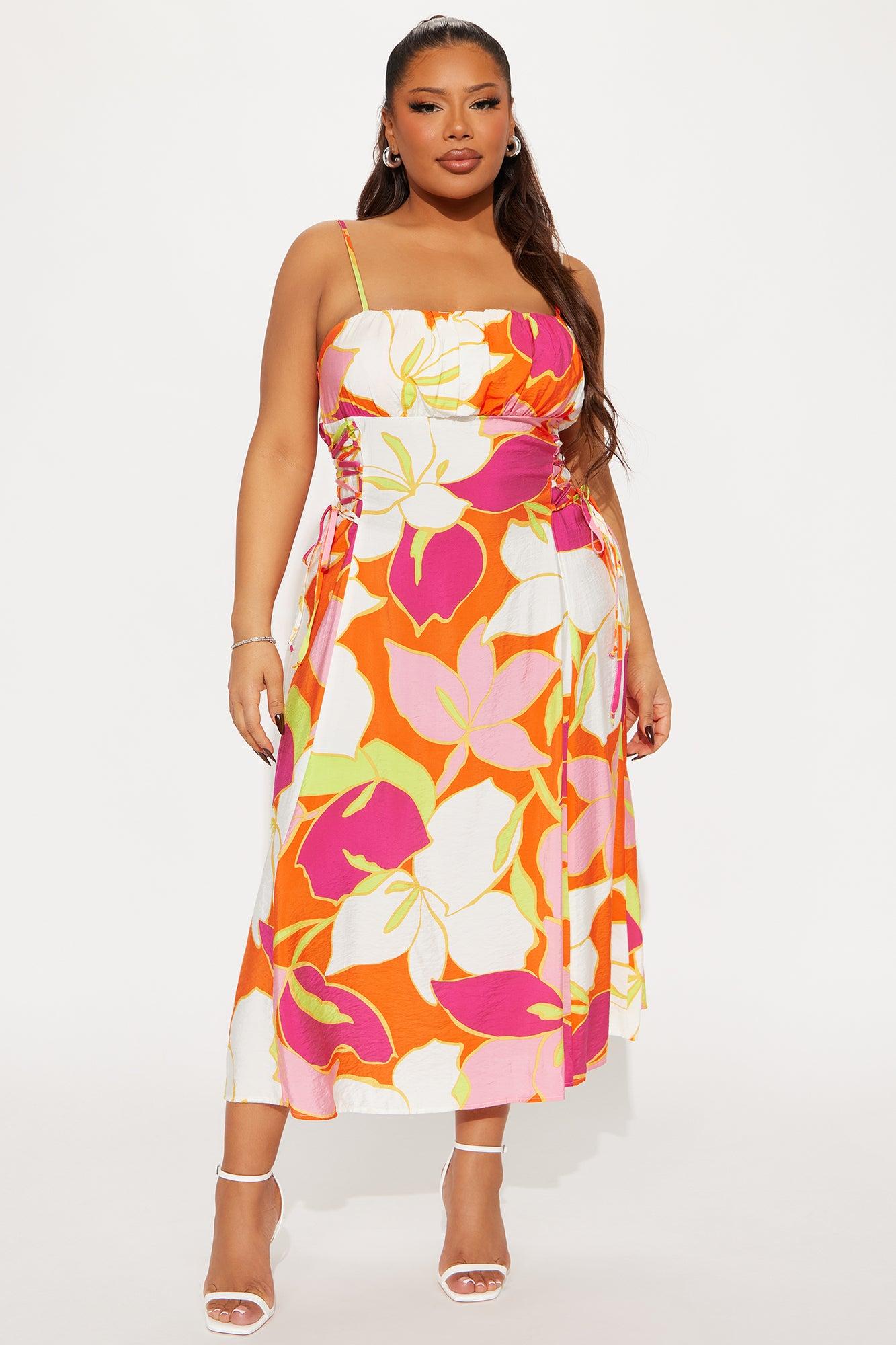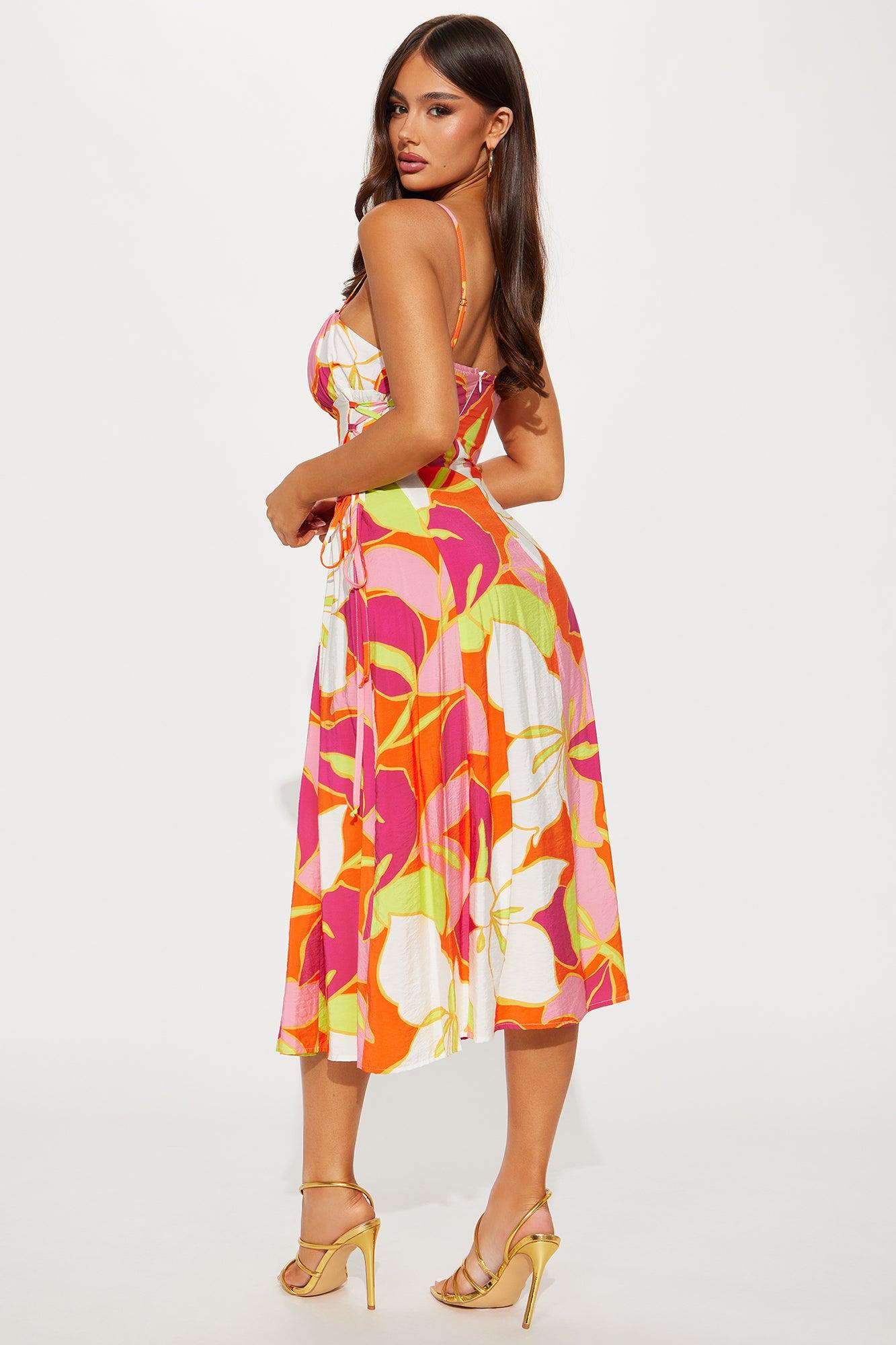 Lotus Garden Lace Up Midi Dress - Multi Color