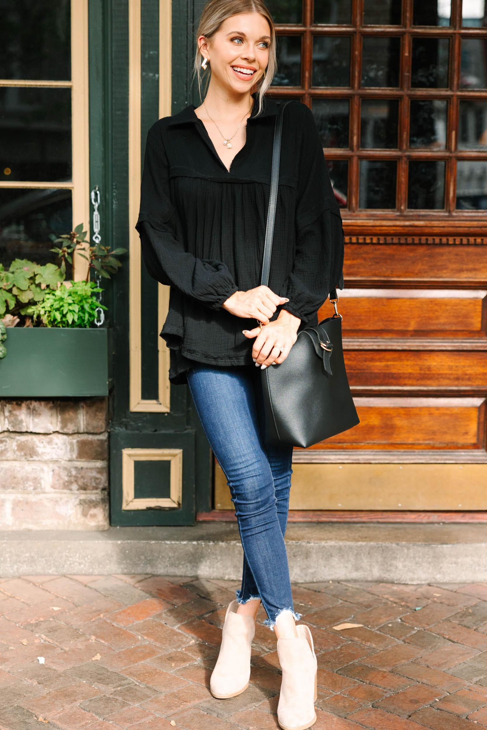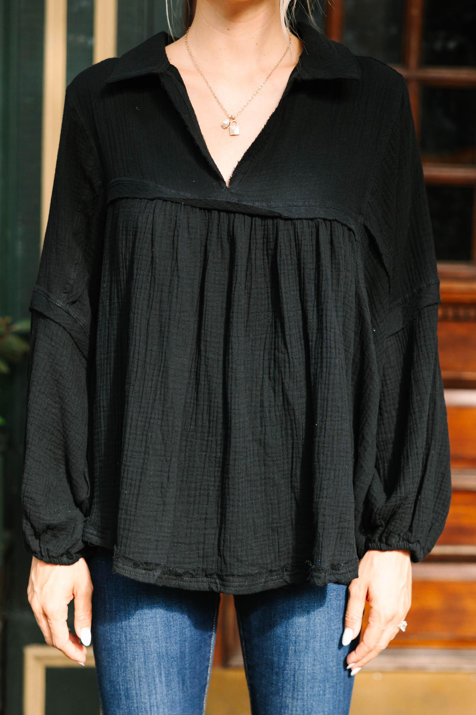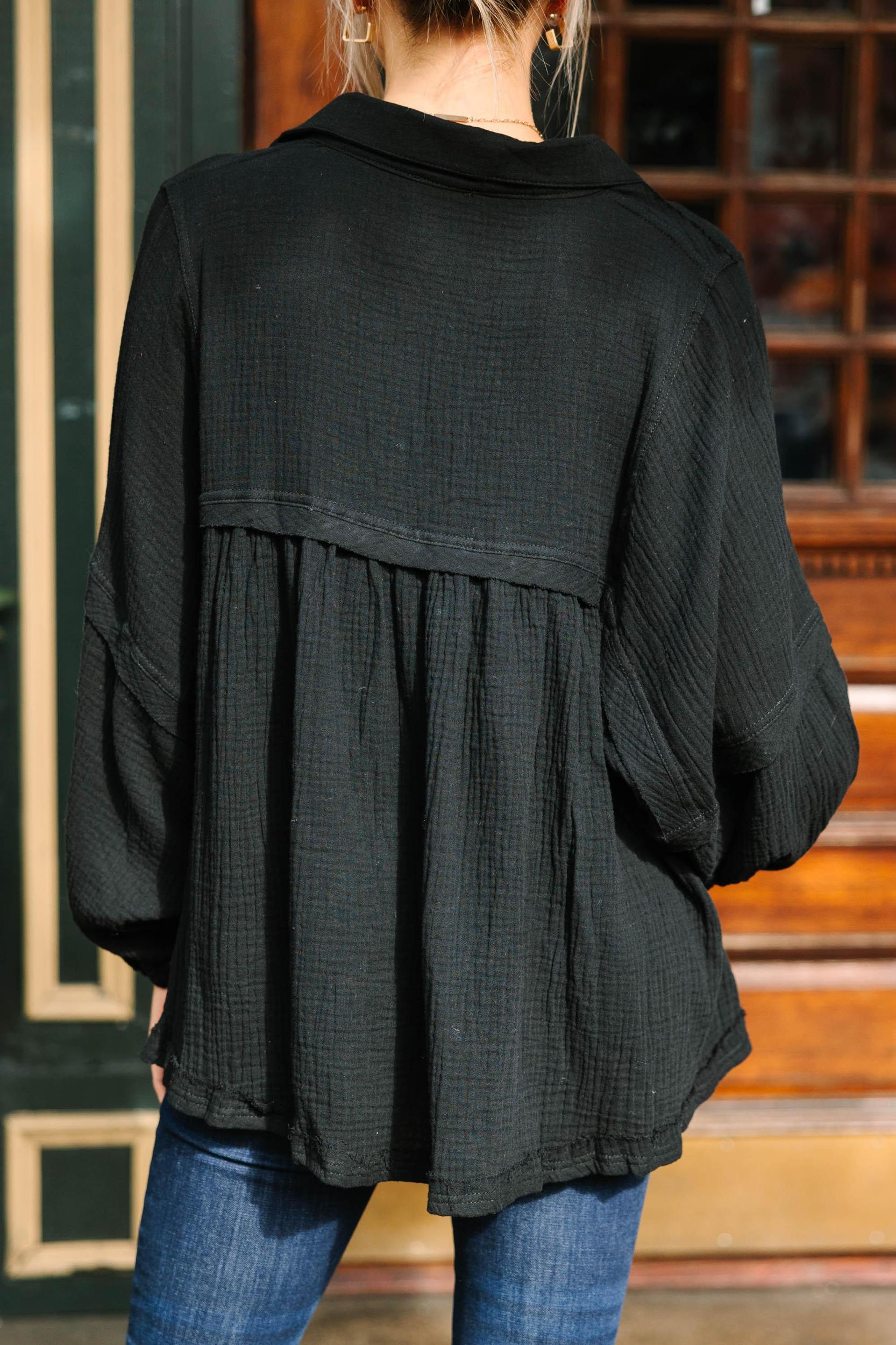 You are going to love life so much more in this oversized, boho beauty! That babydoll fit is so flowy and that cotton gauze fabric has the perfect amount of airiness! This babydoll top has your name written all over it! It's going to look amazing with jeans or shorts for year round wear! This top features a babydoll cut, a collared v-neck, long bubble sleeves, and a gauzy cotton fabric. Material has no amount of stretch.Cam is wearing the small.