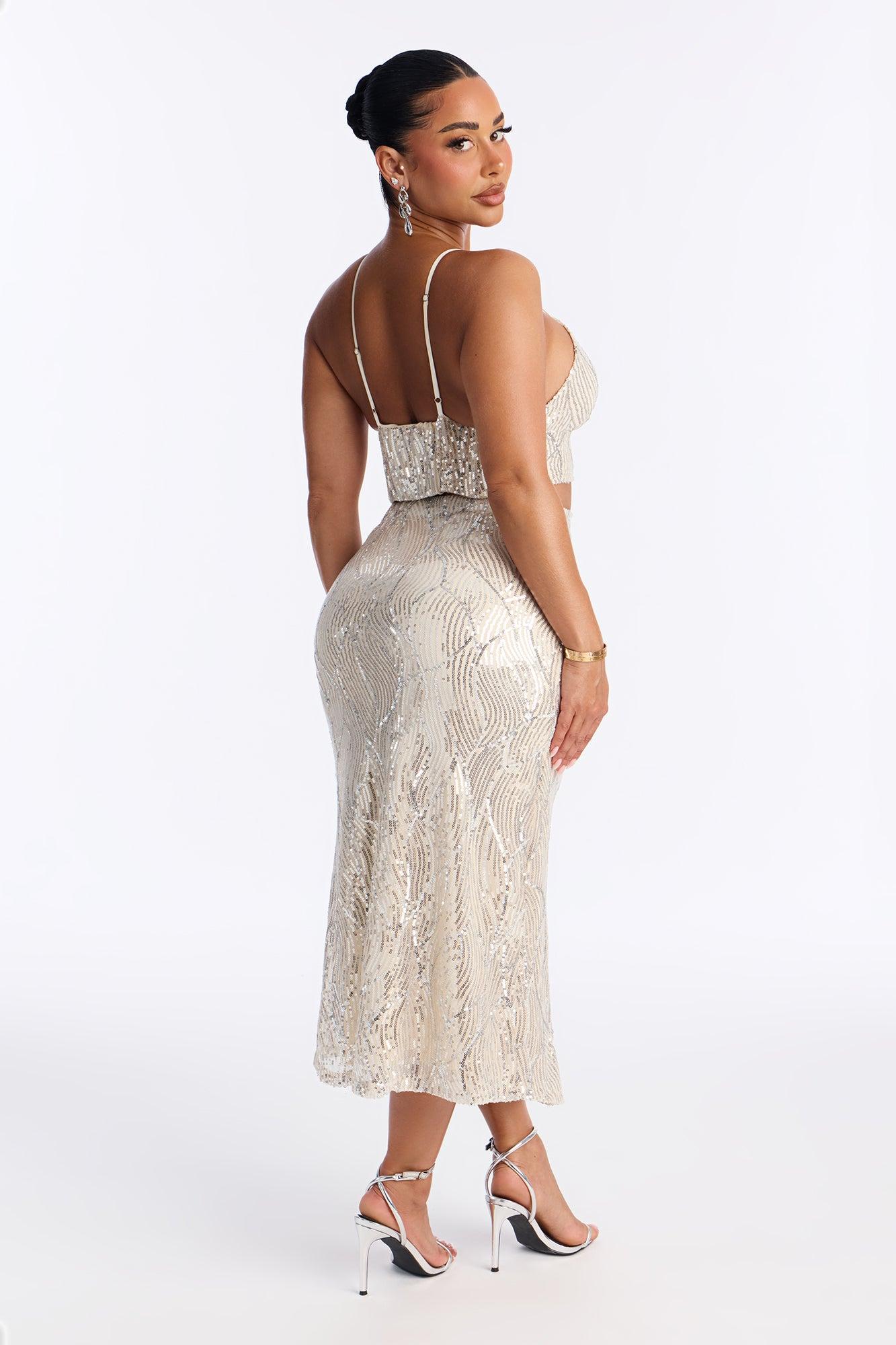 Love Or Lust Sequin Maxi Skirt Set - Cream Female