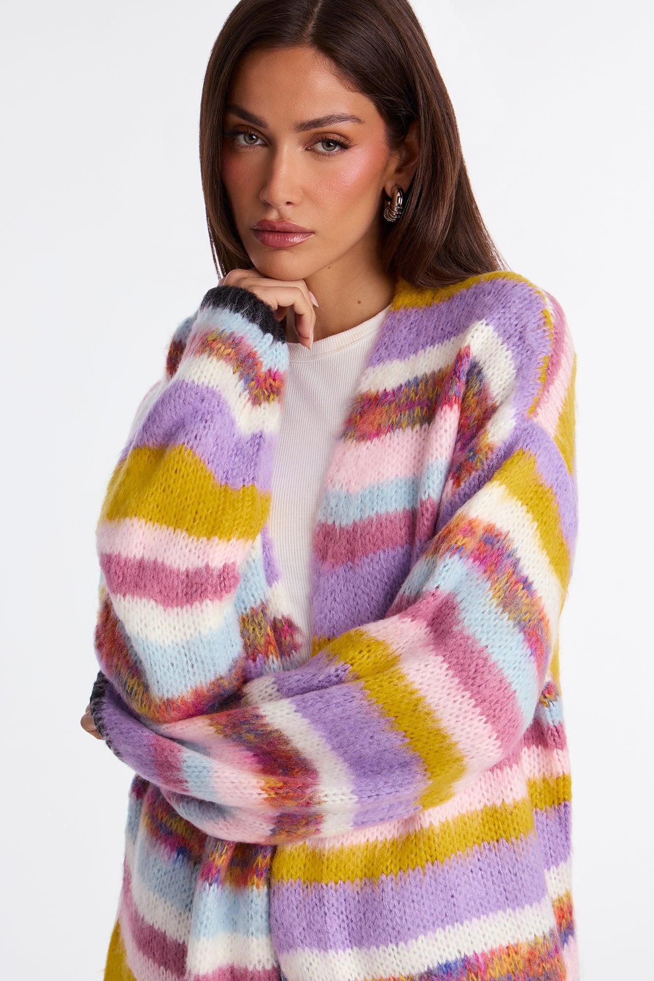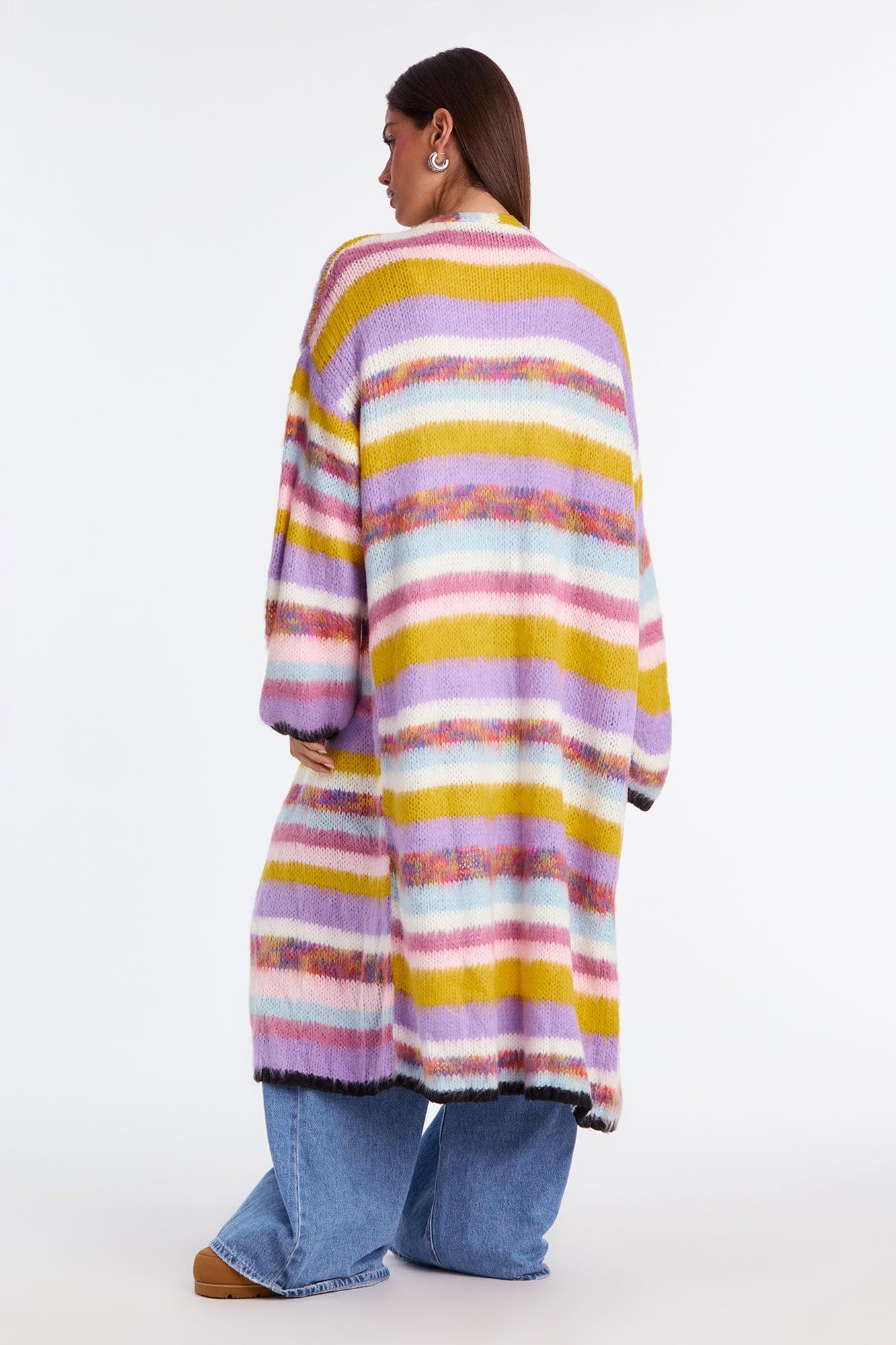 Loveliness Colorblock Fuzzy Long Cardigan - Multi Color Female